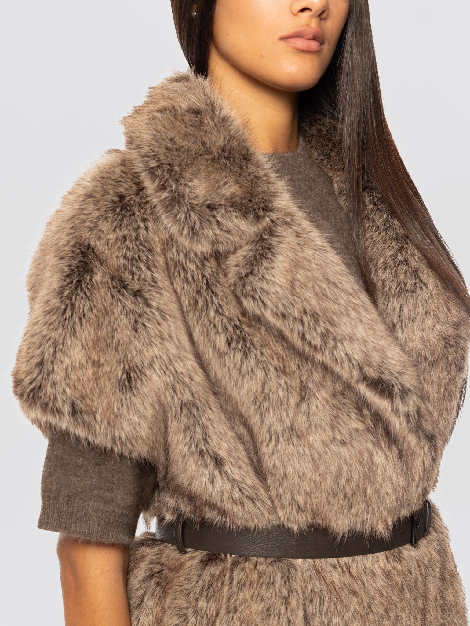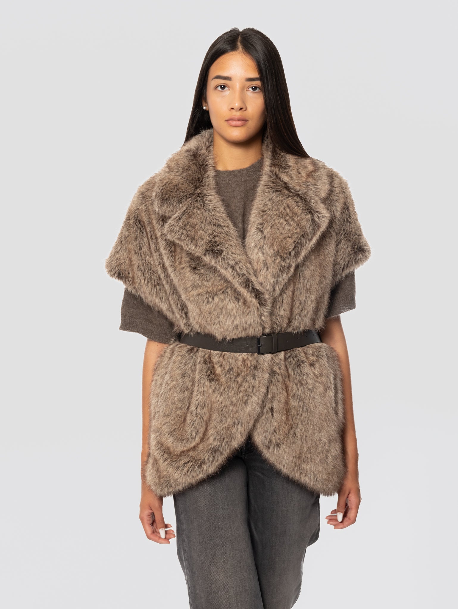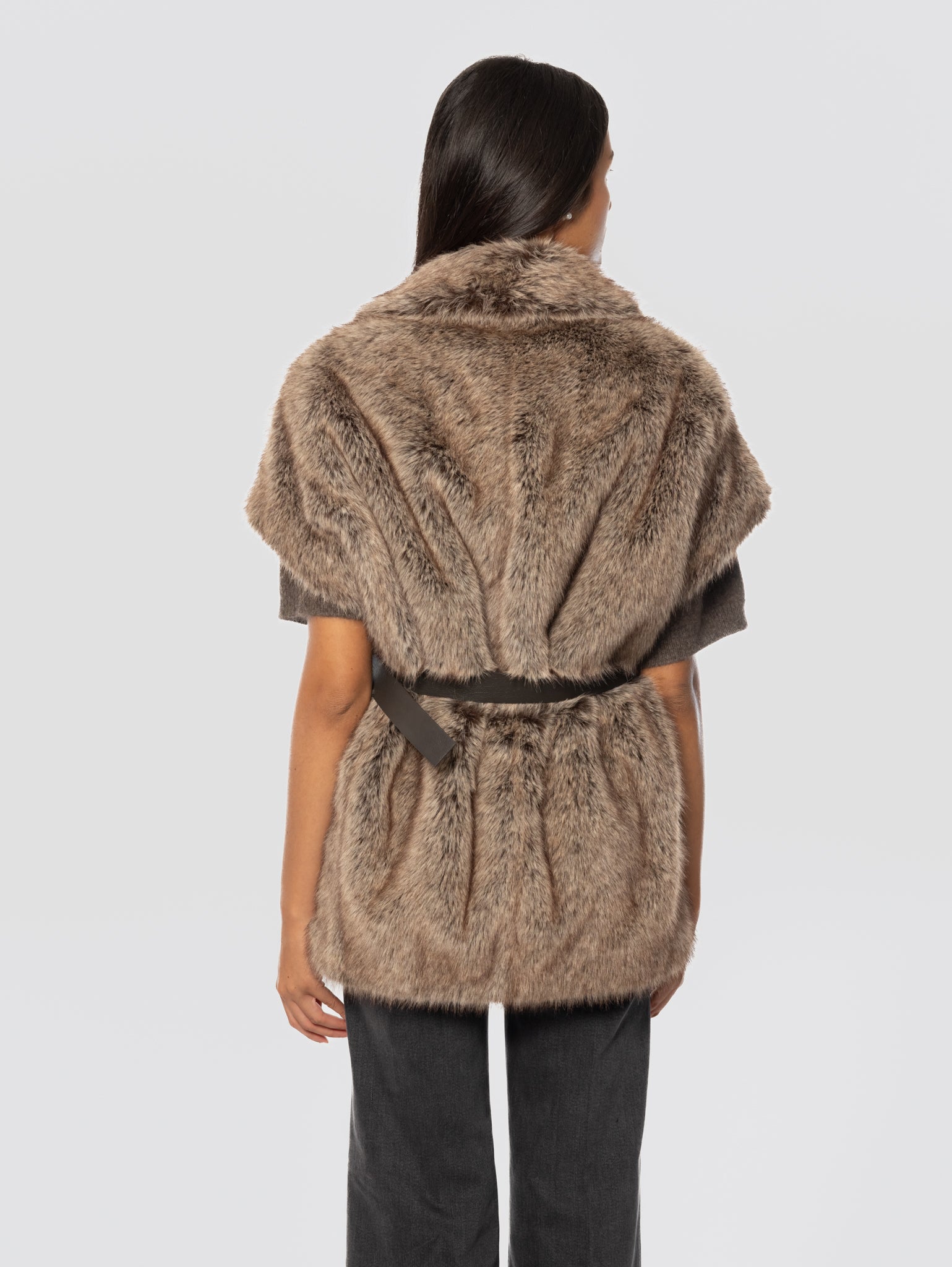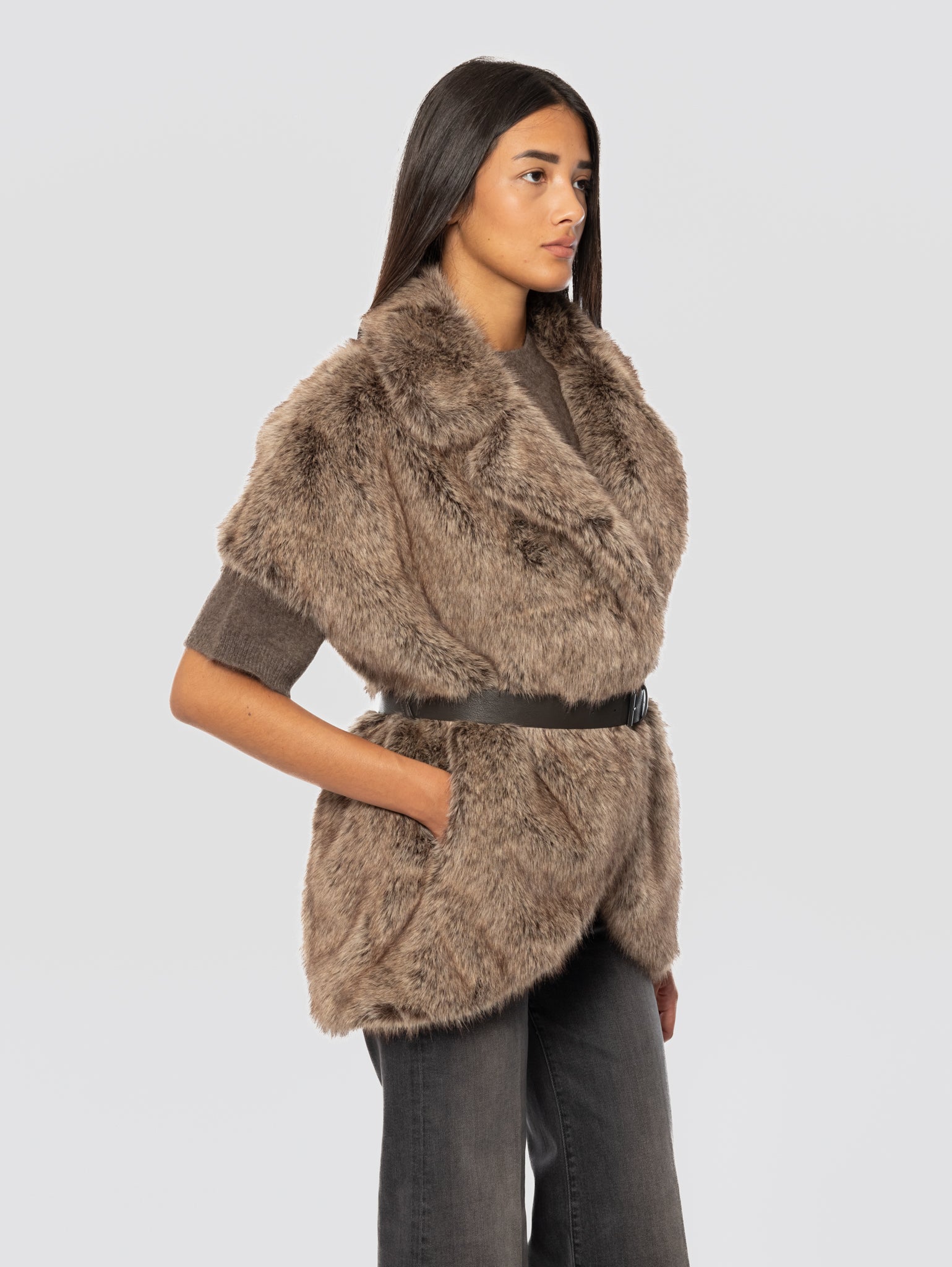 Gilet Corto in Ecopelliccia a Pelo Lungo Greige