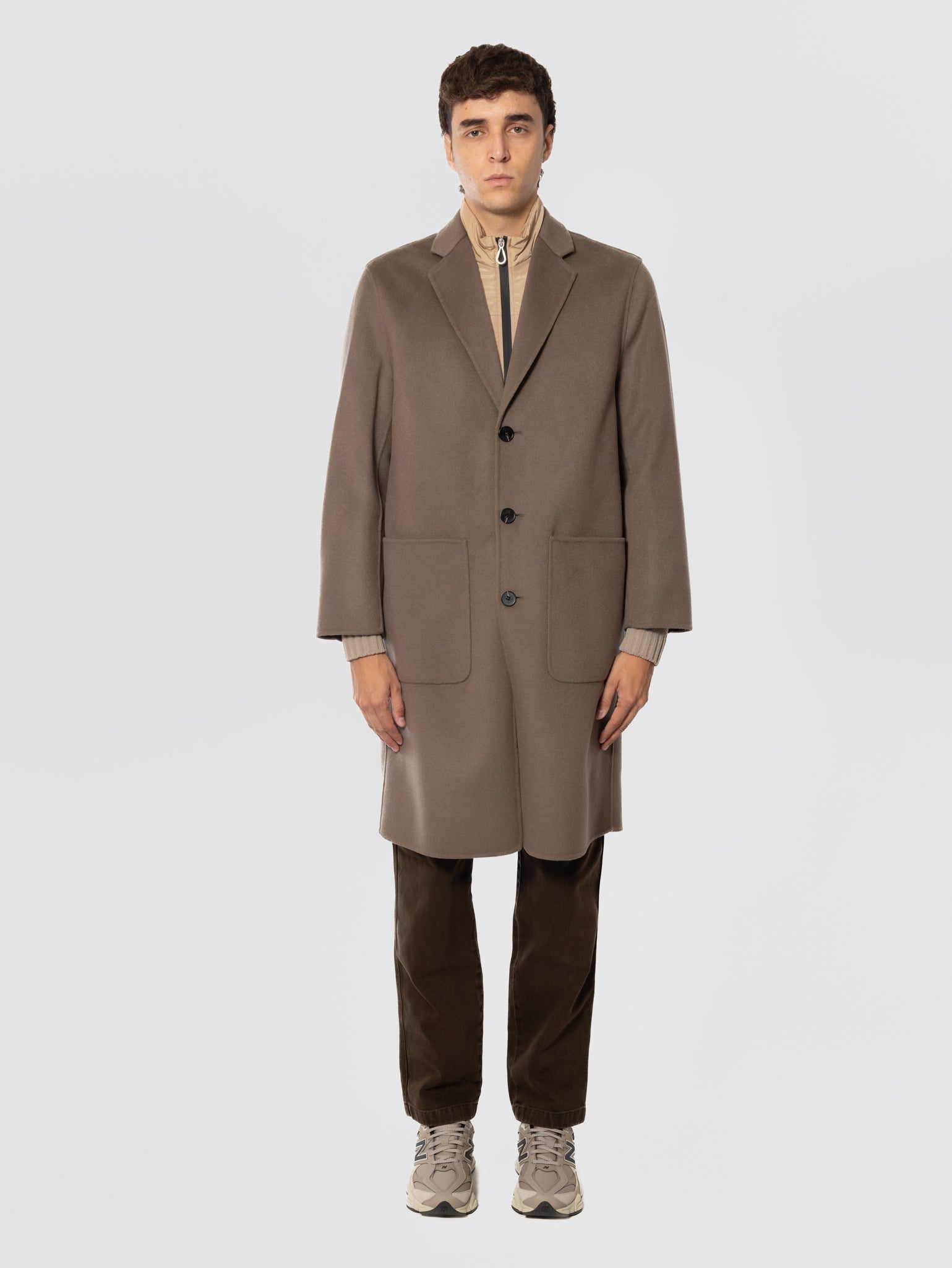 - Cappotto in lana doppia con taglio vivo e forma oversize