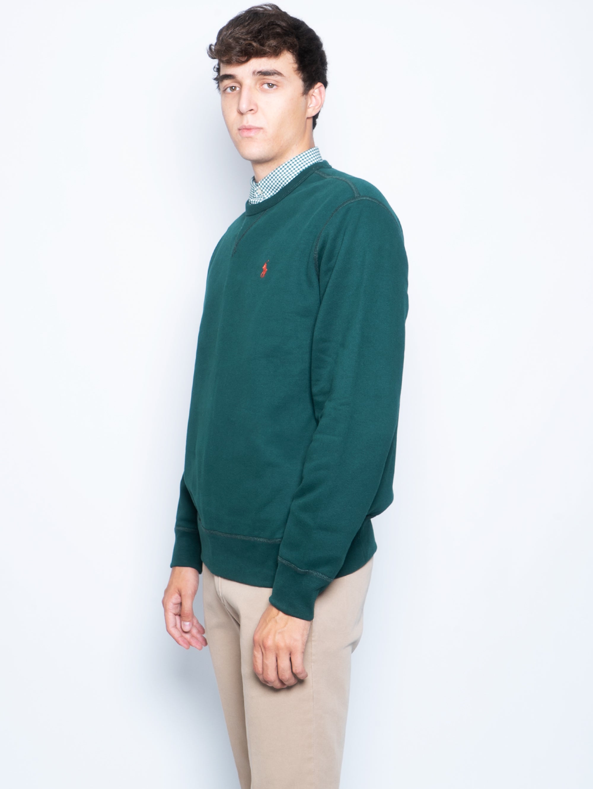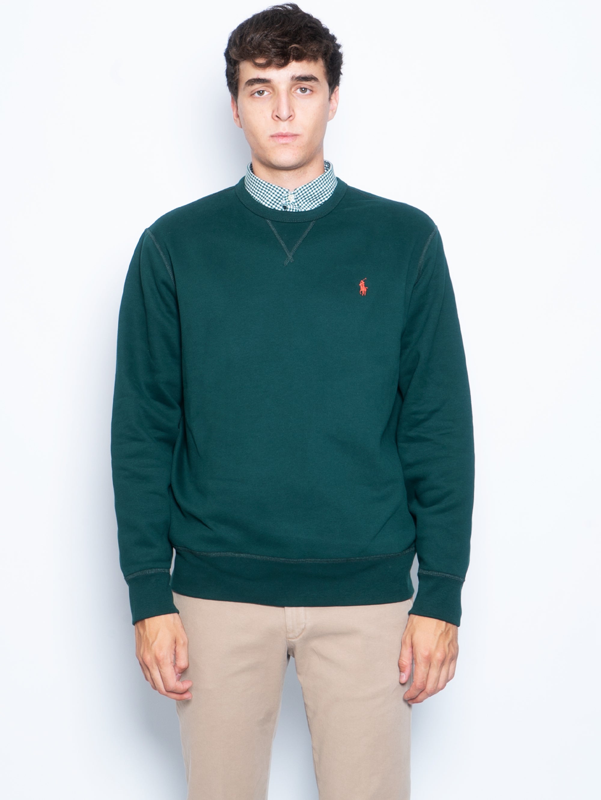 RALPH LAUREN-Felpa Girocollo con Inserto a V Verde-TRYME Shop