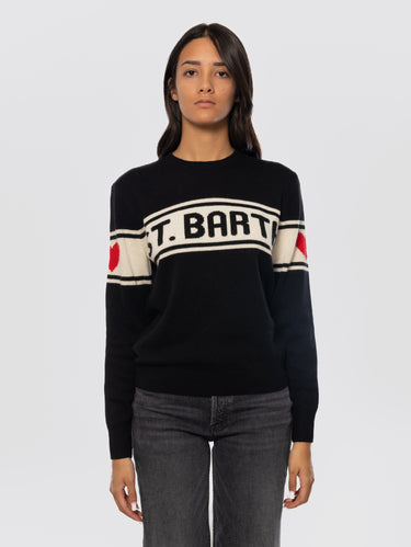 Maglione girocollo con stampa jacquard St. Barth con cuori modello New Queen da donna di Mc2 Saint Barth.