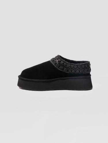 - Morbida pelle di montone e cuciture in lana unite ad una suola rialzata in EVA