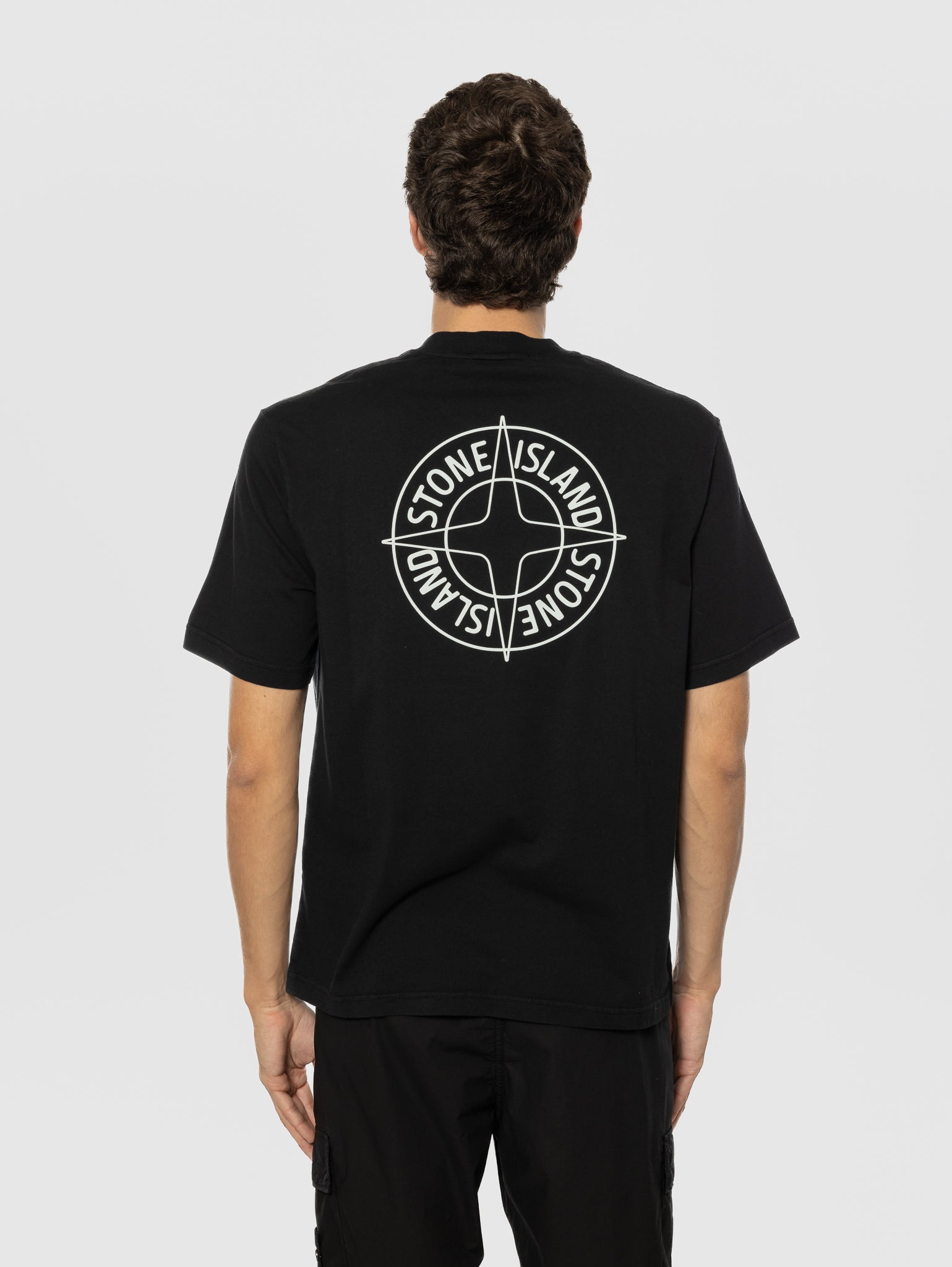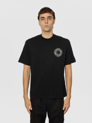 T-shirt a manica corta in jersey di cotone con stampa logo Compass sul petto ripresa in versione maxi sul retro mmodello 2100001 da uomo di Stone Island.