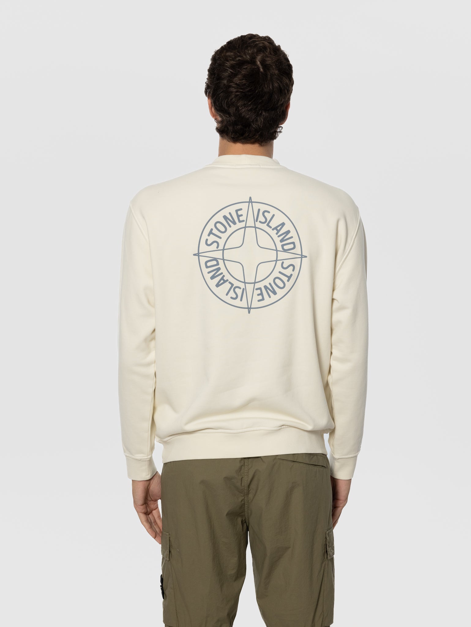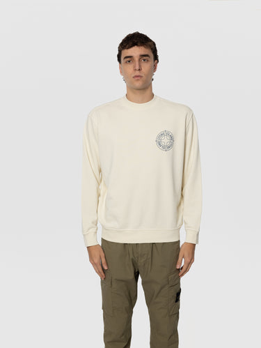 Felpa girocollo in cotone con bordi a costine e logo Compass stampato in rilievo sul petto modello 6100001 da uomo di Stone Island.