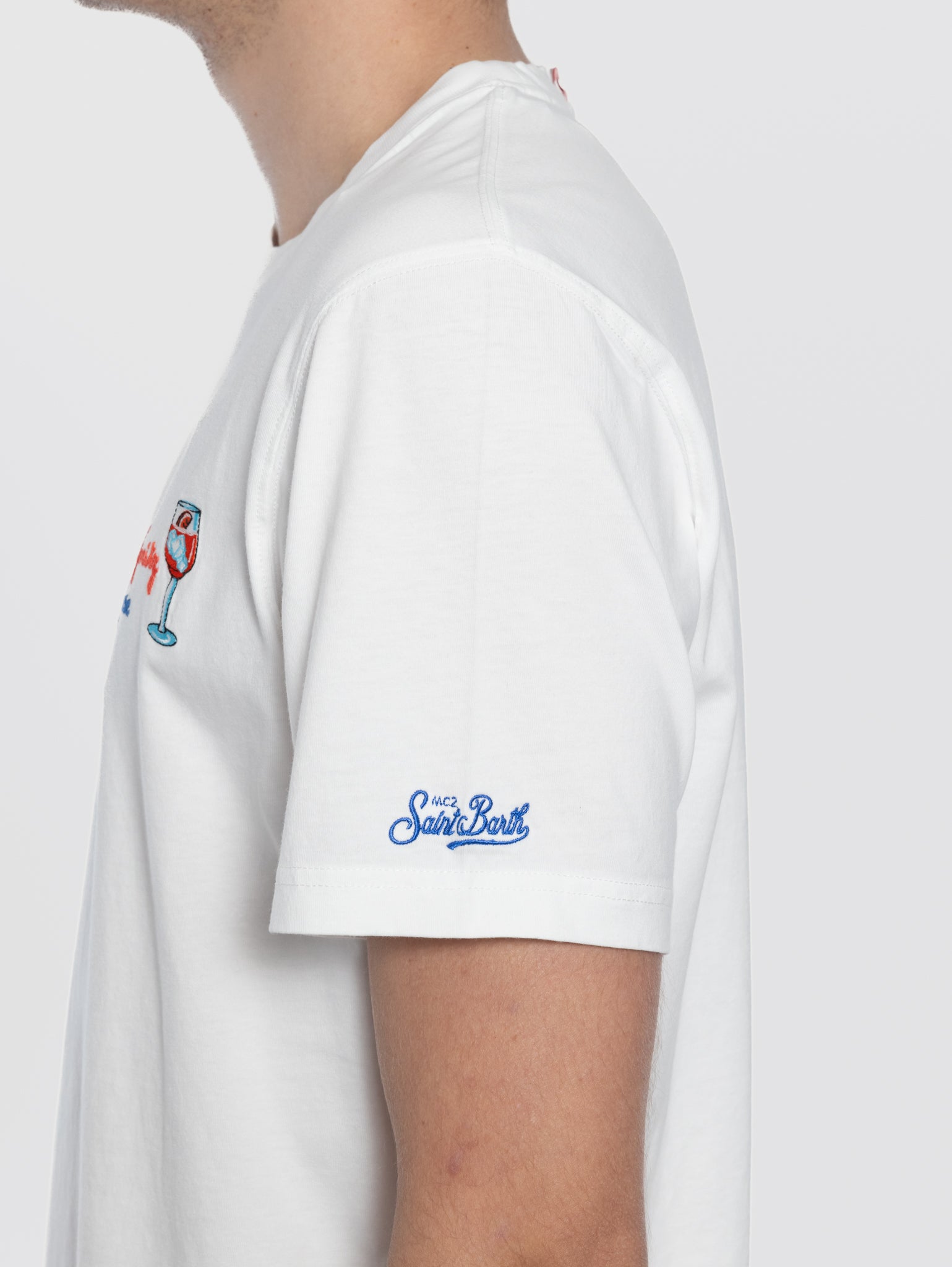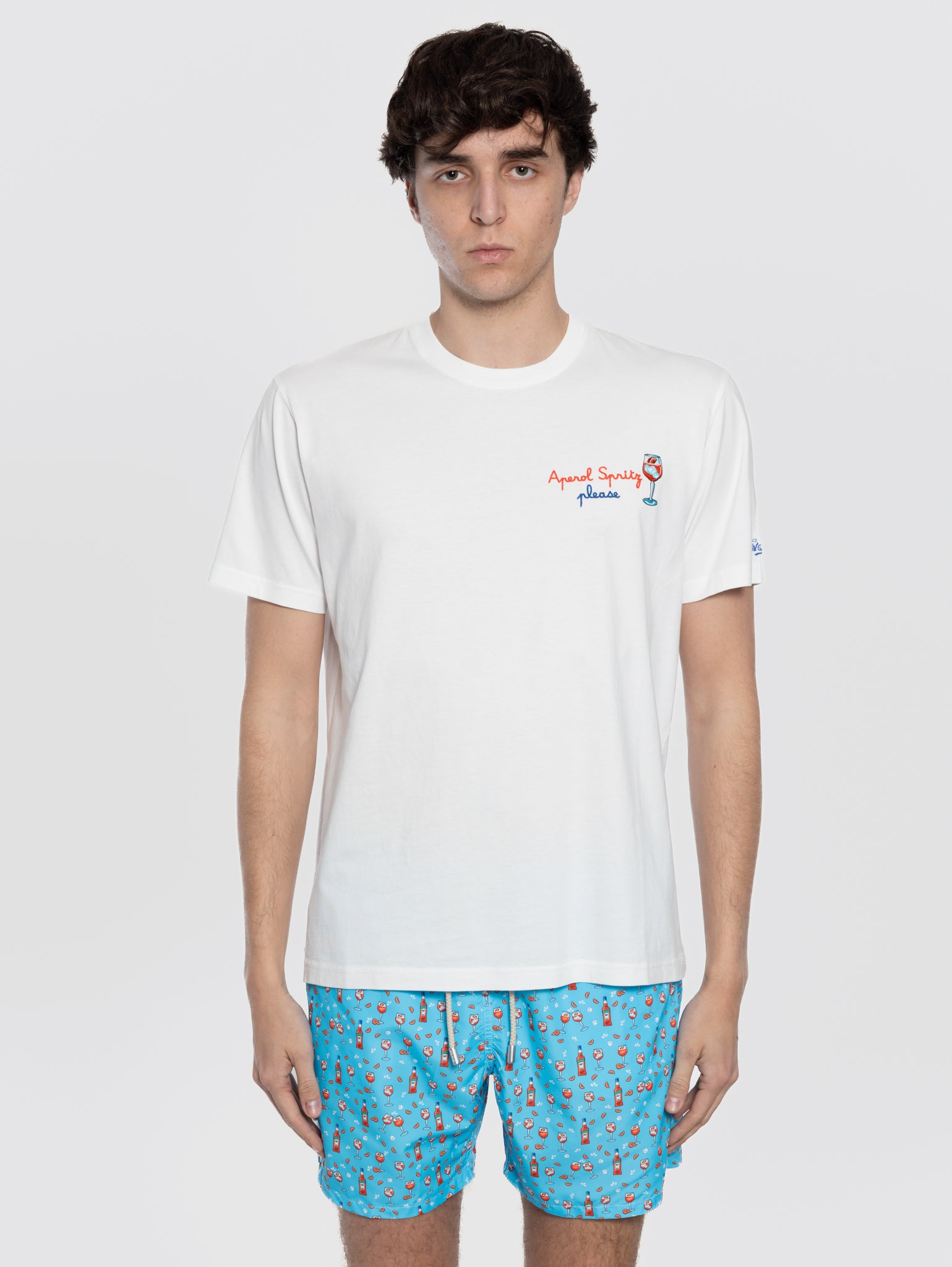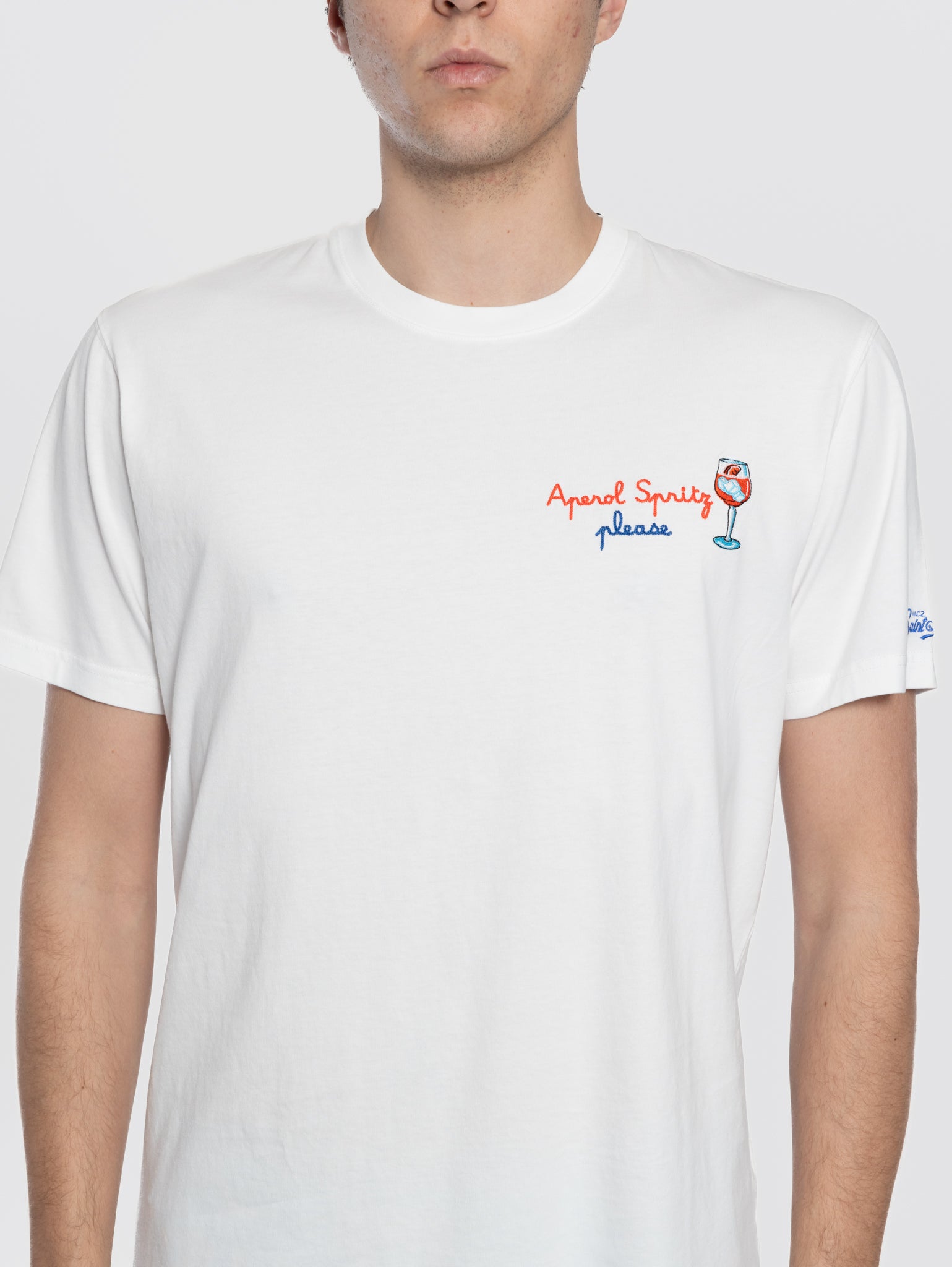 T-Shirt mit Rundhalsausschnitt aus der Portofino-Linie mit Stickerei auf der Brust Aperol Spritz Please für Herren von Mc2 Saint Barth.