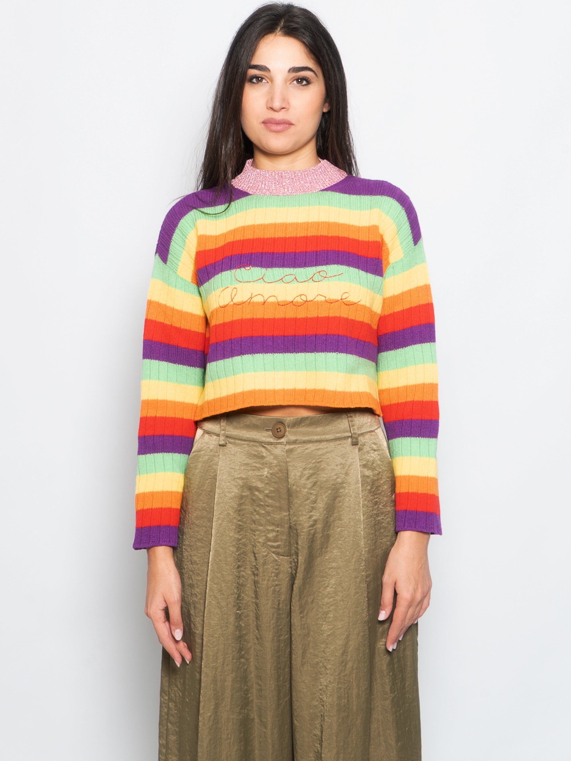 Ciao Amore Mehrfarbig gestreiftes Crop-Top