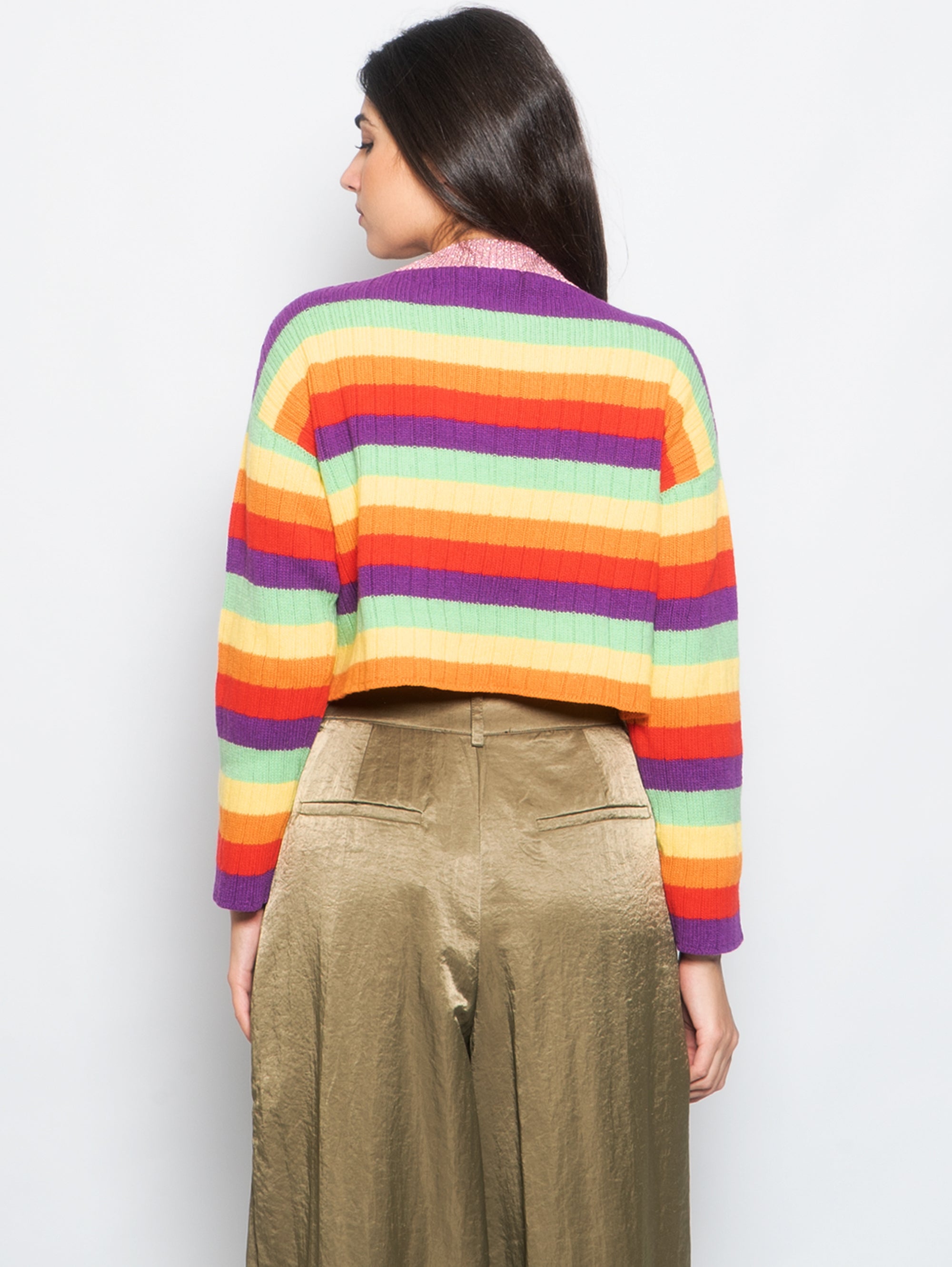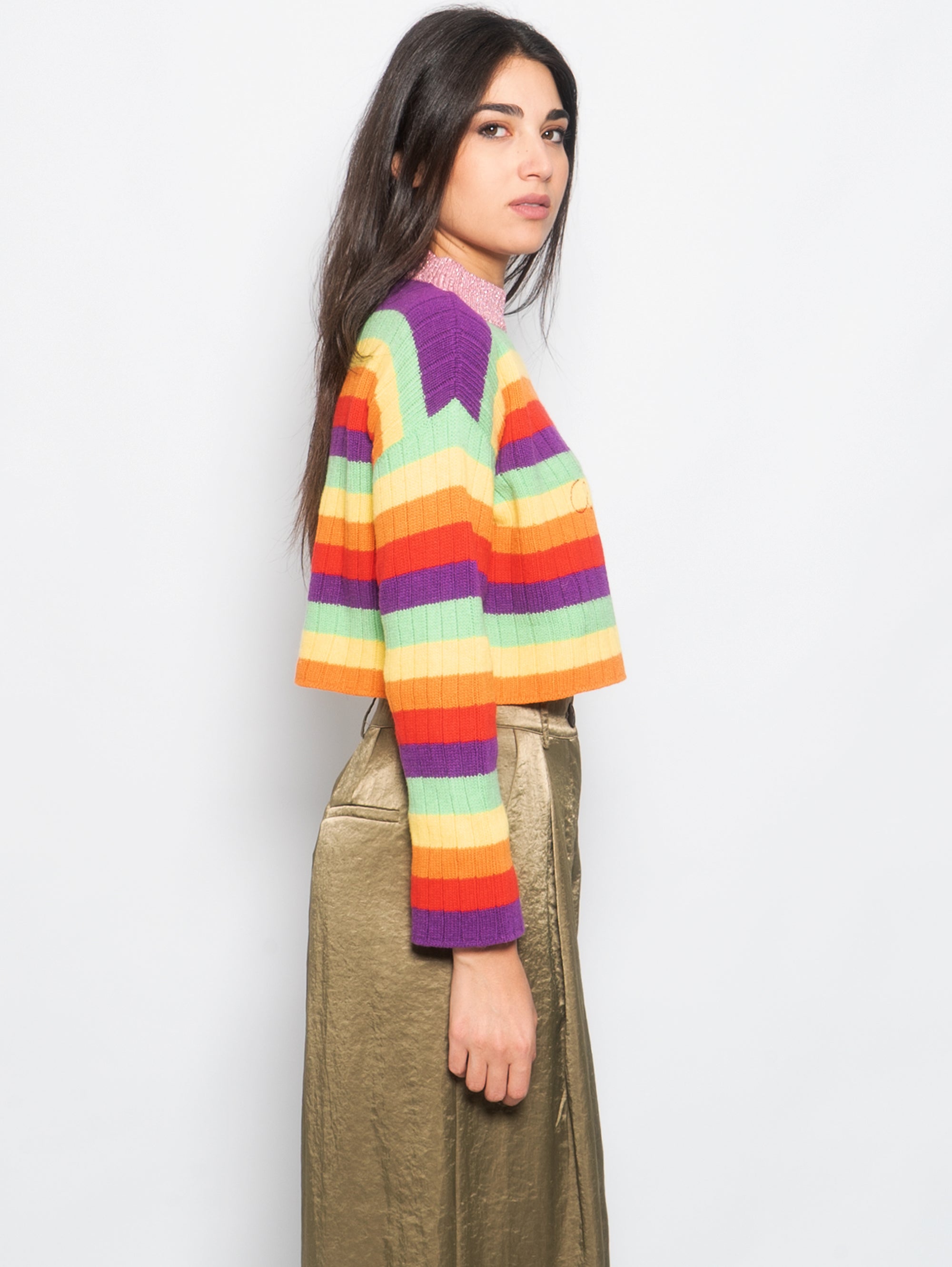 - Gemusterter, mehrfarbig gestreifter Crop-Pullover