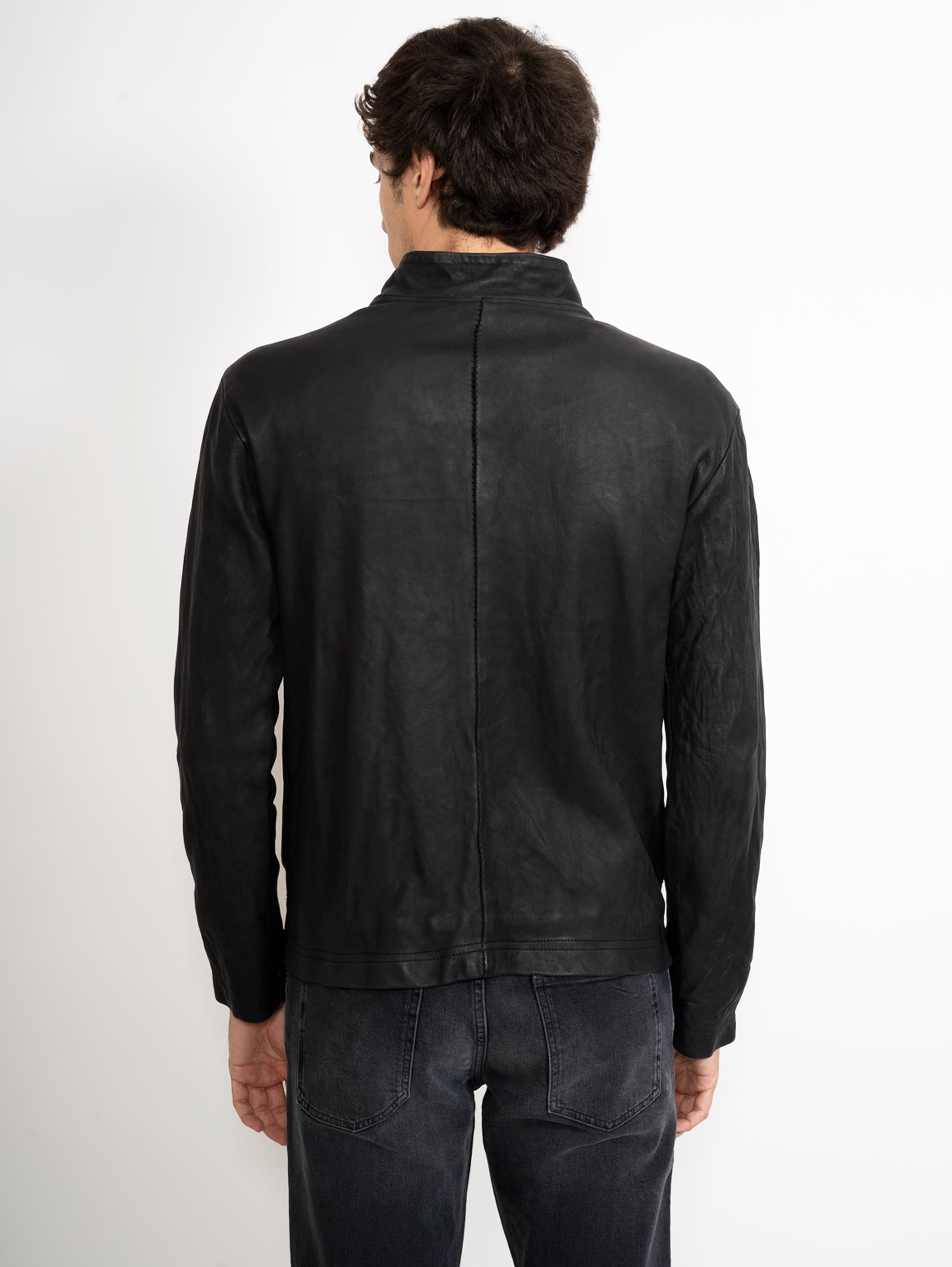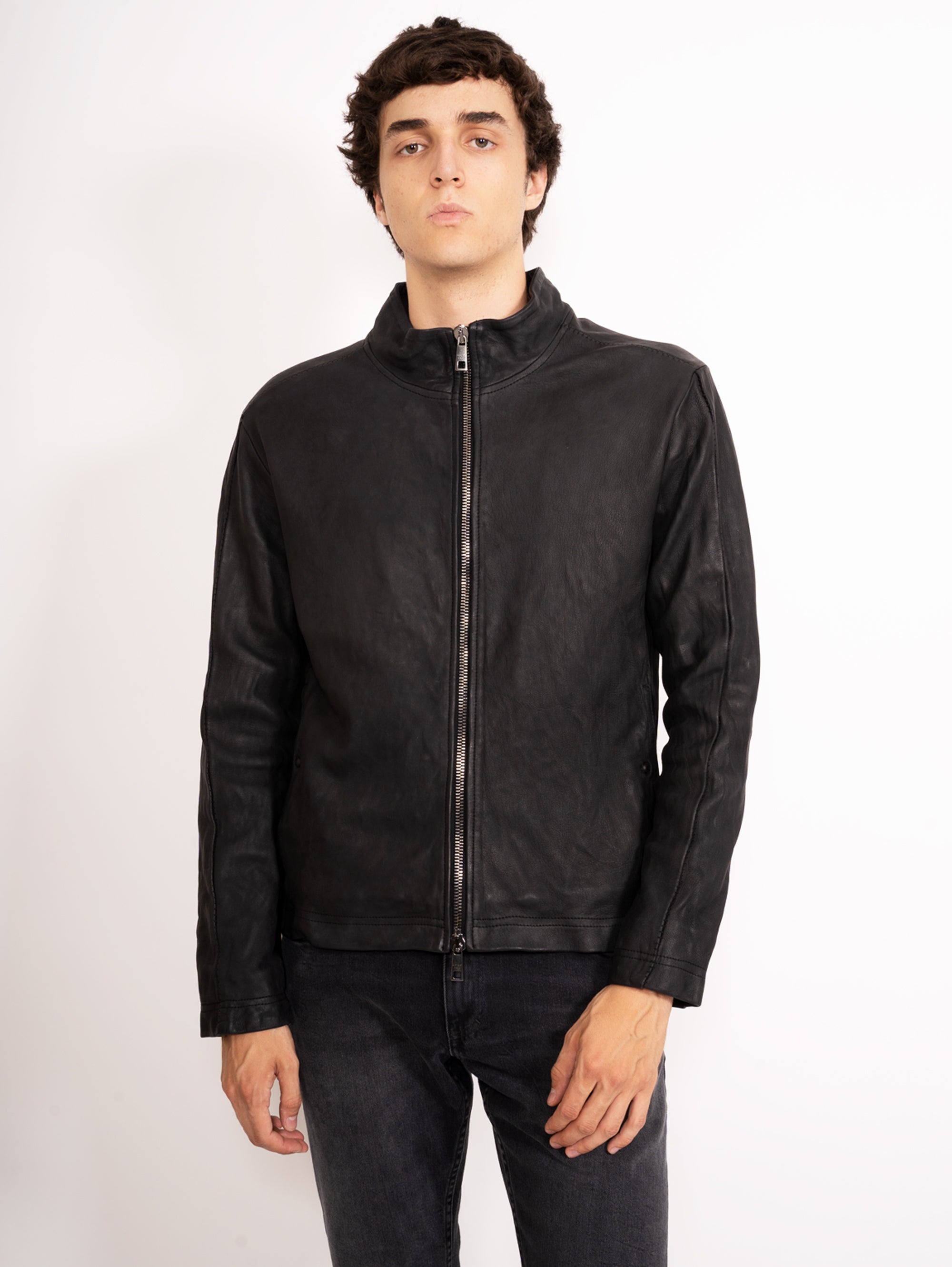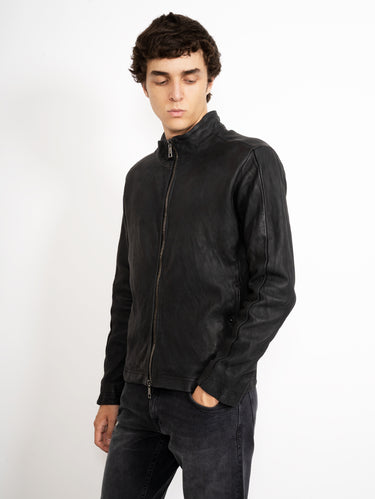 Schwarze Bikerjacke aus gebürstetem Leder