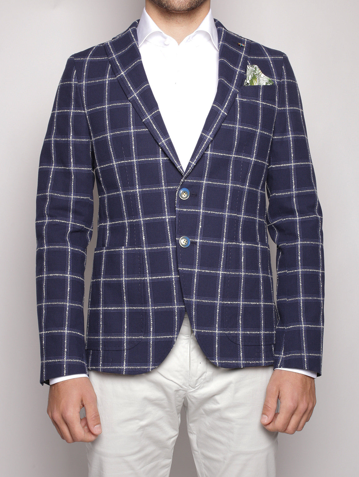 Blau / Weiße Jacquard-Jacke mit Fenstern