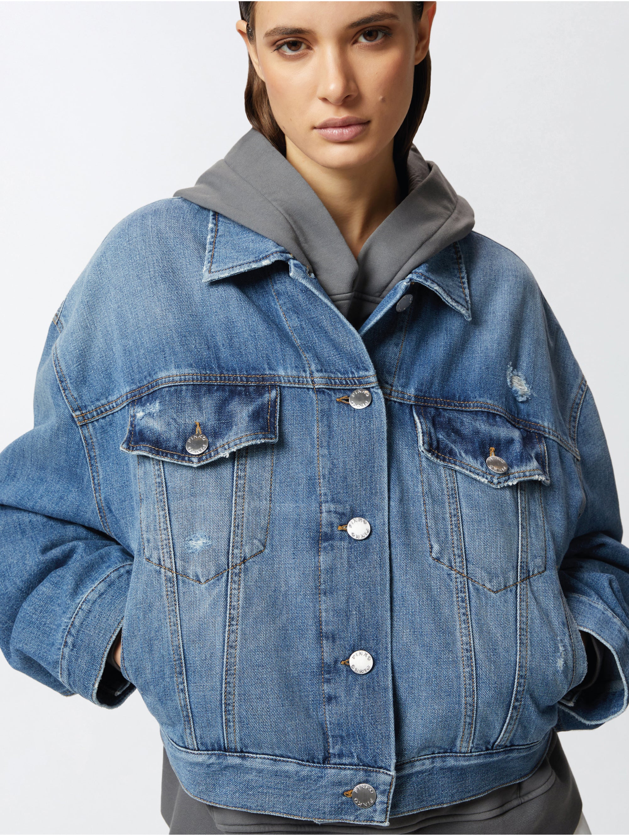 Jeansjacke mit klassischem Schnitt, aus Rebel Wash Baumwoll-Denim, Modell Gaborone für Damen von Pinko.
