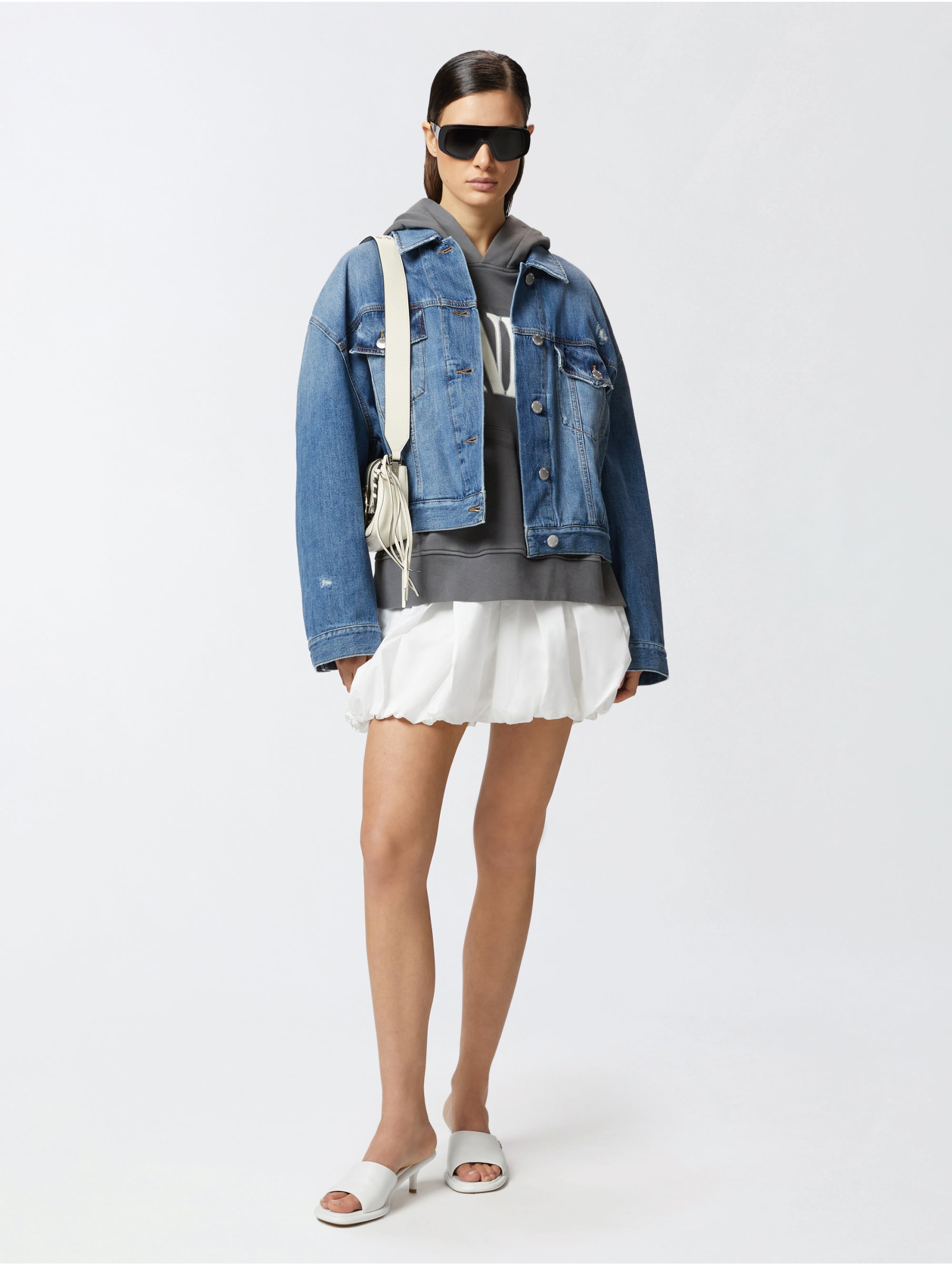 - Maniche mit entspanntem Schnitt und niedriger Rundung