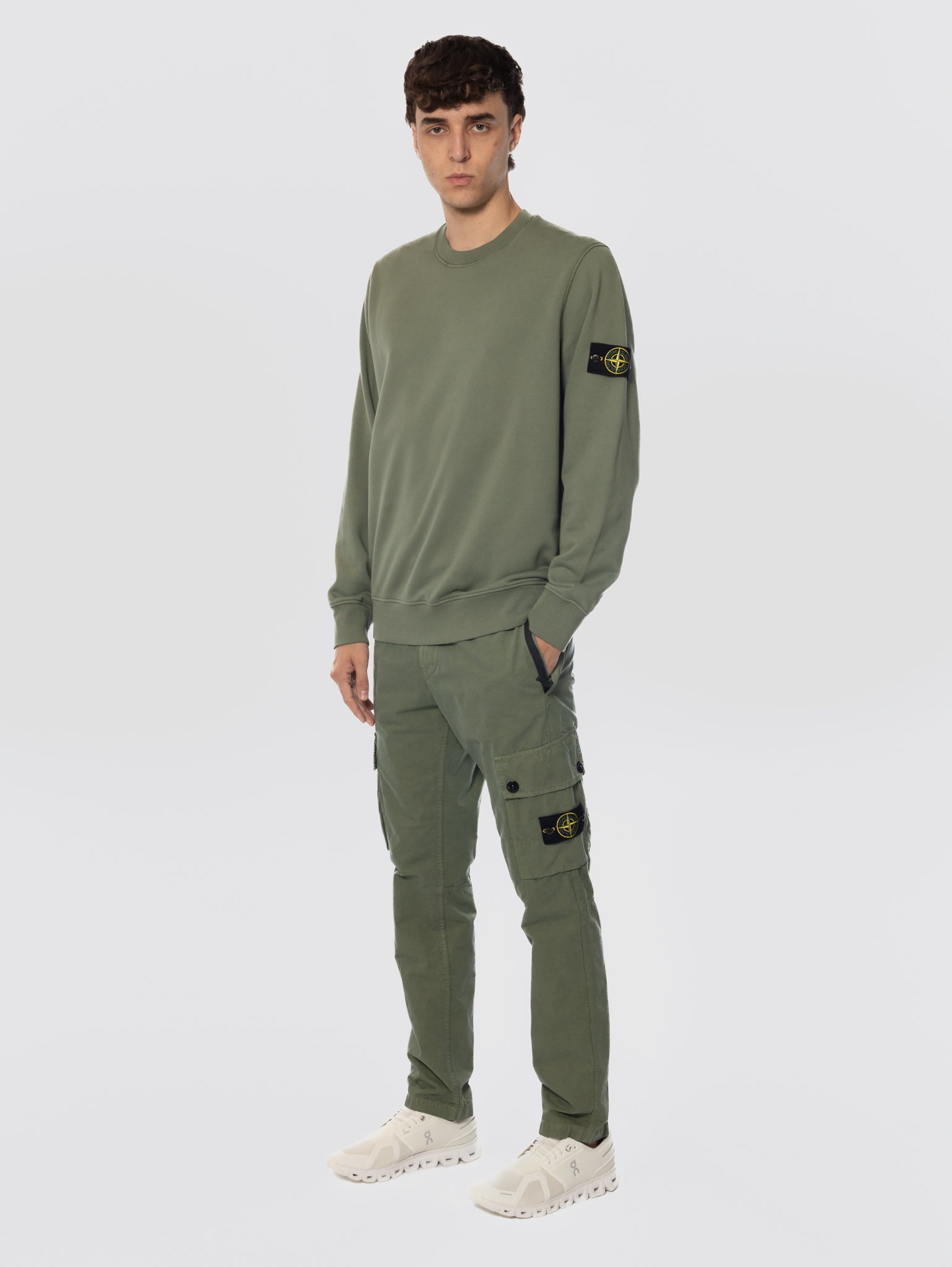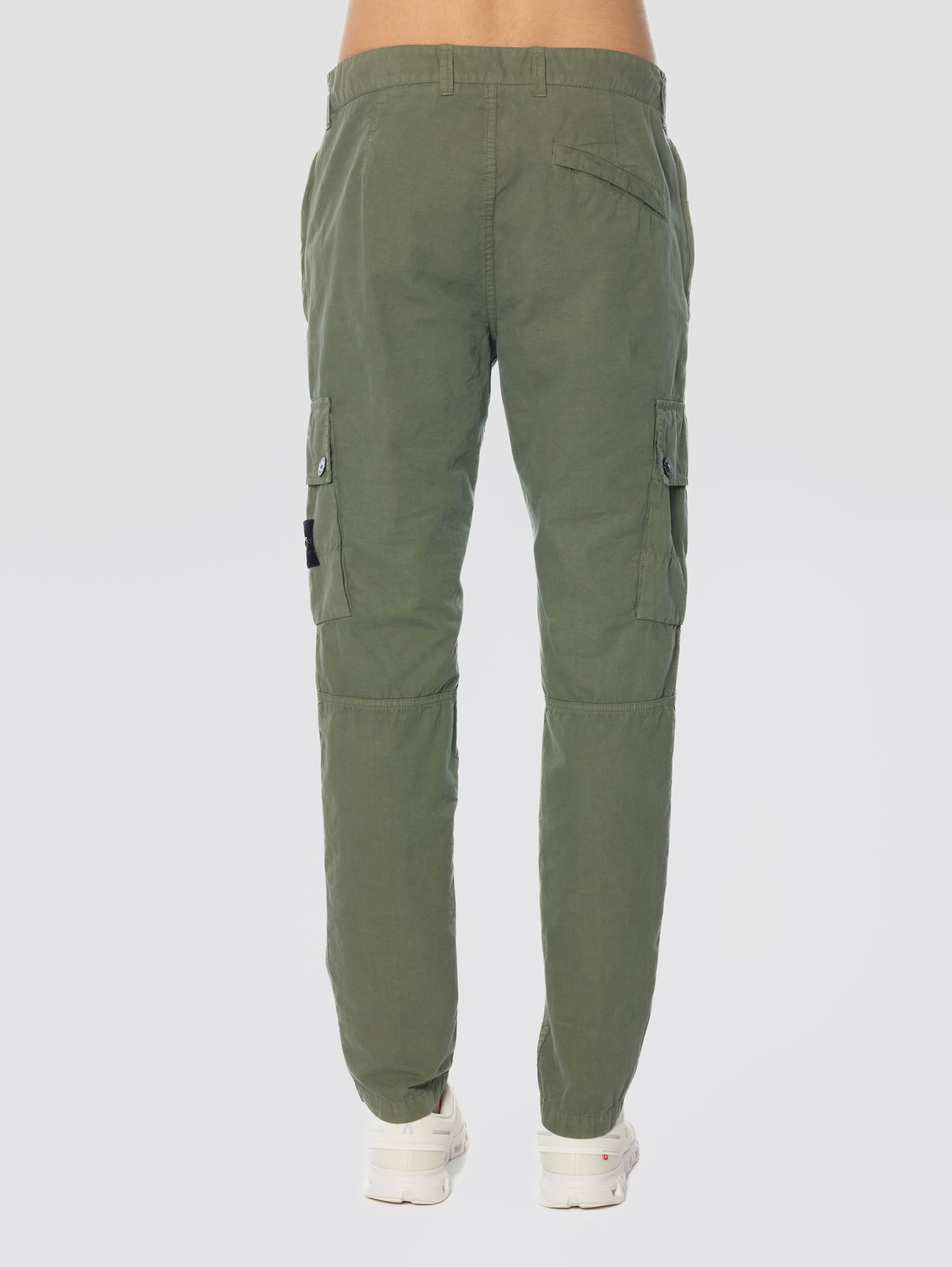 - Tasche mit Falten an den Beinen mit Klappe und Druckknopf; Stone Island Badge auf der linken Tasche