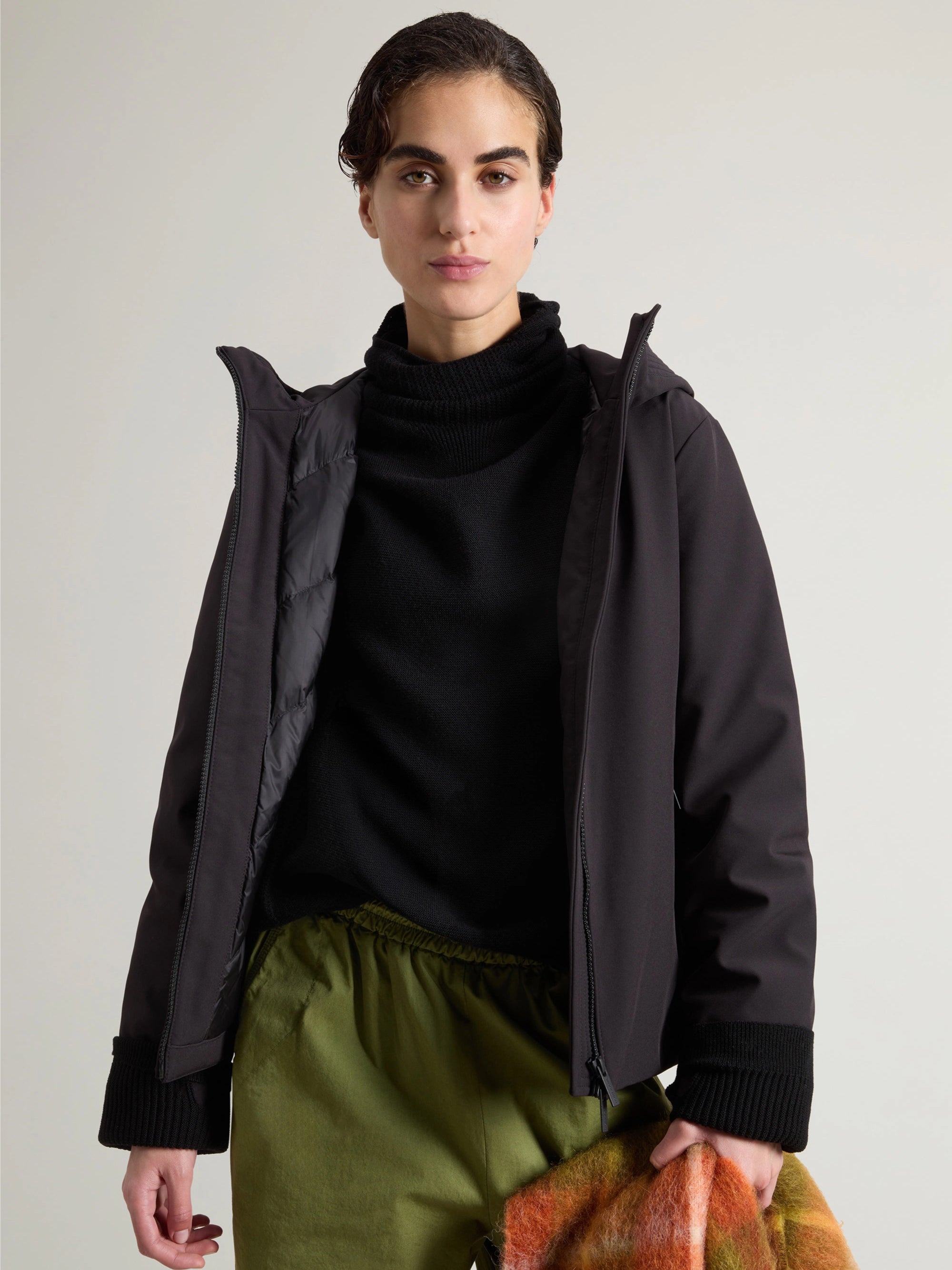 - Hergestellt aus Tech Softshell-Gewebe