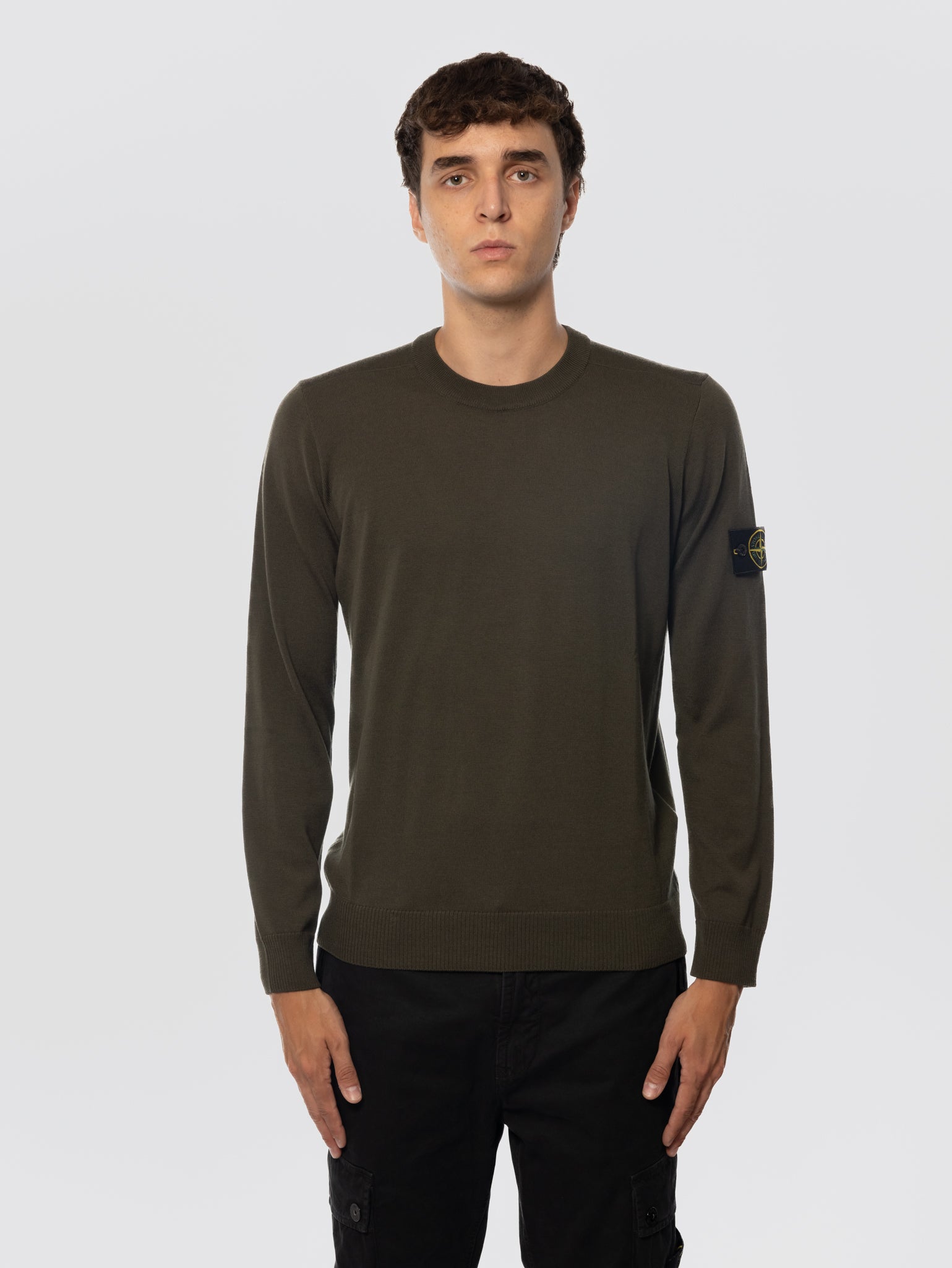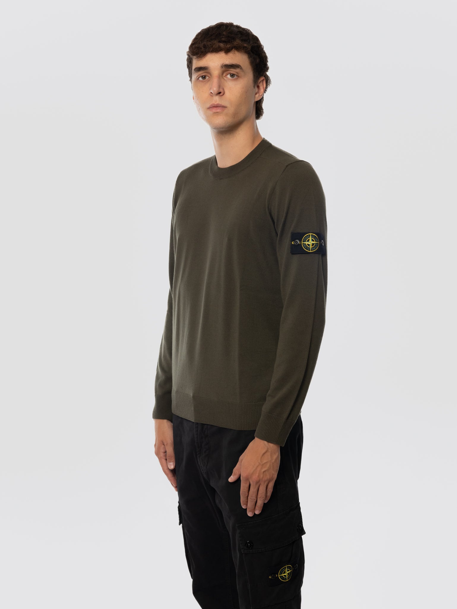 Maglione girocollo in pura lana finezza 14 modello 5100071 da uomo di Stone Island.