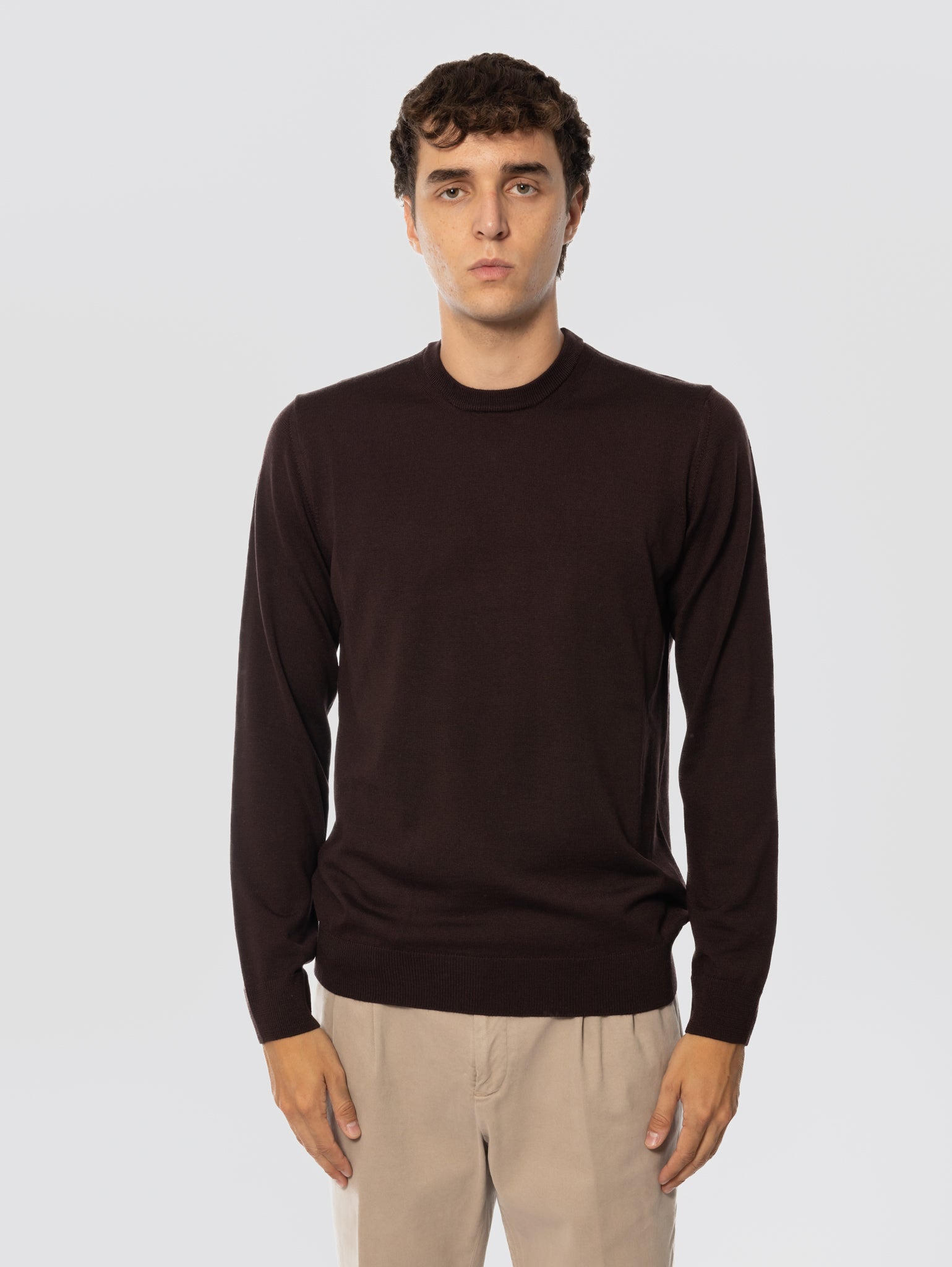 Maglione girocollo in lana merinos extrafine slim fit modello AU 3010C da uomo di Alpha Studio.