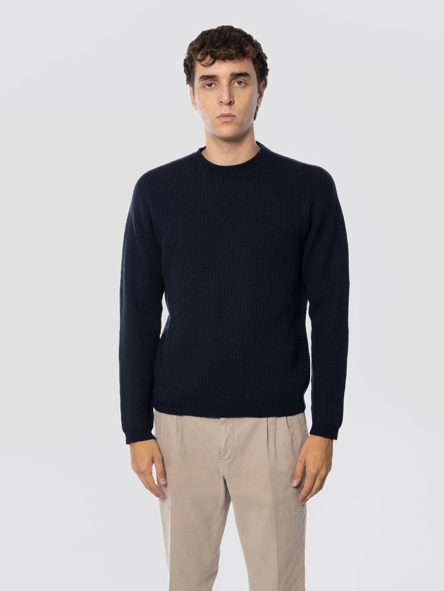 ALPHA STUDIO-Maglione in Lana Merinos a Coste Blu Notte-TRYME Shop