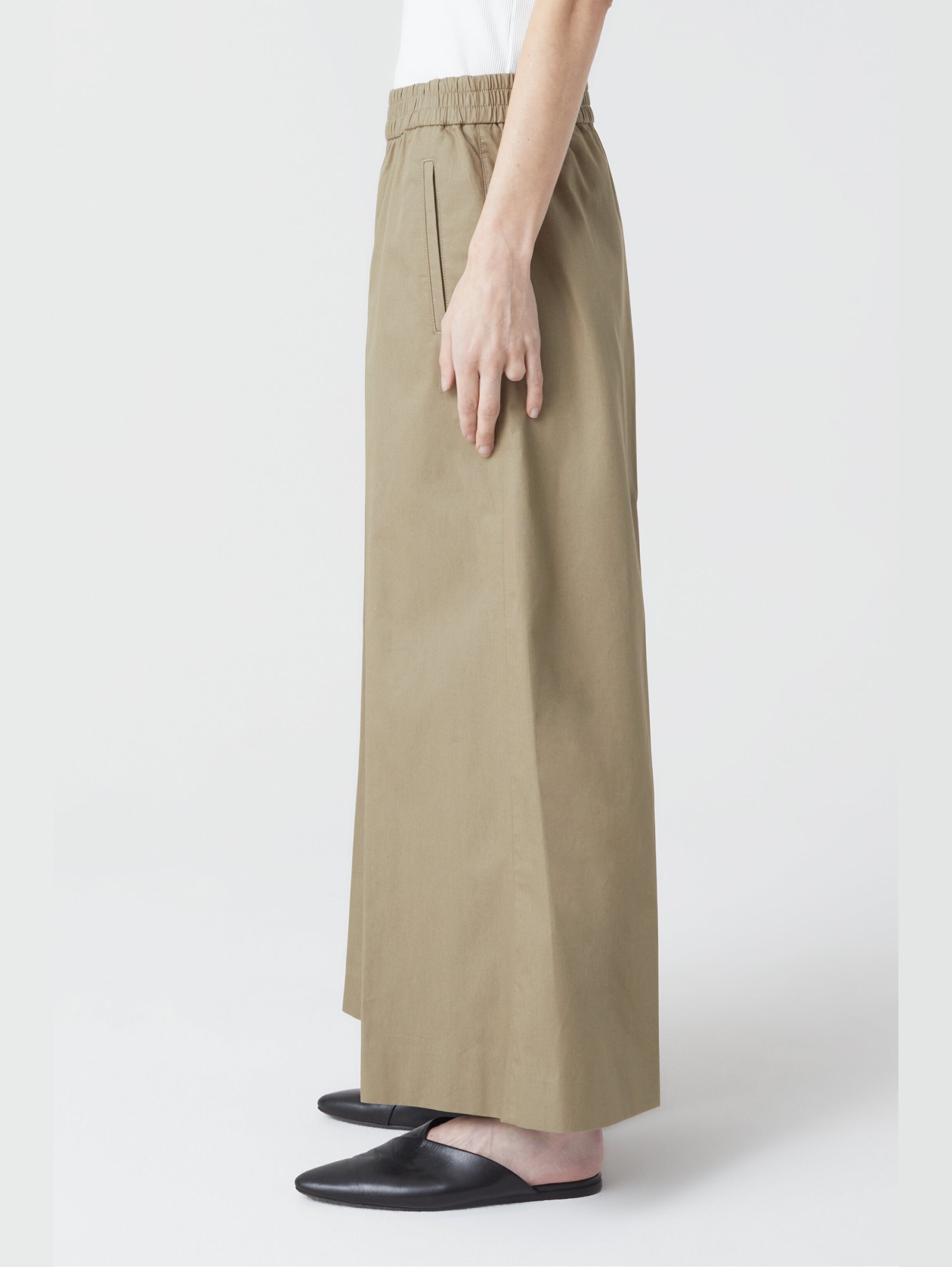 Khaki Cotton Twill Cropped Pants