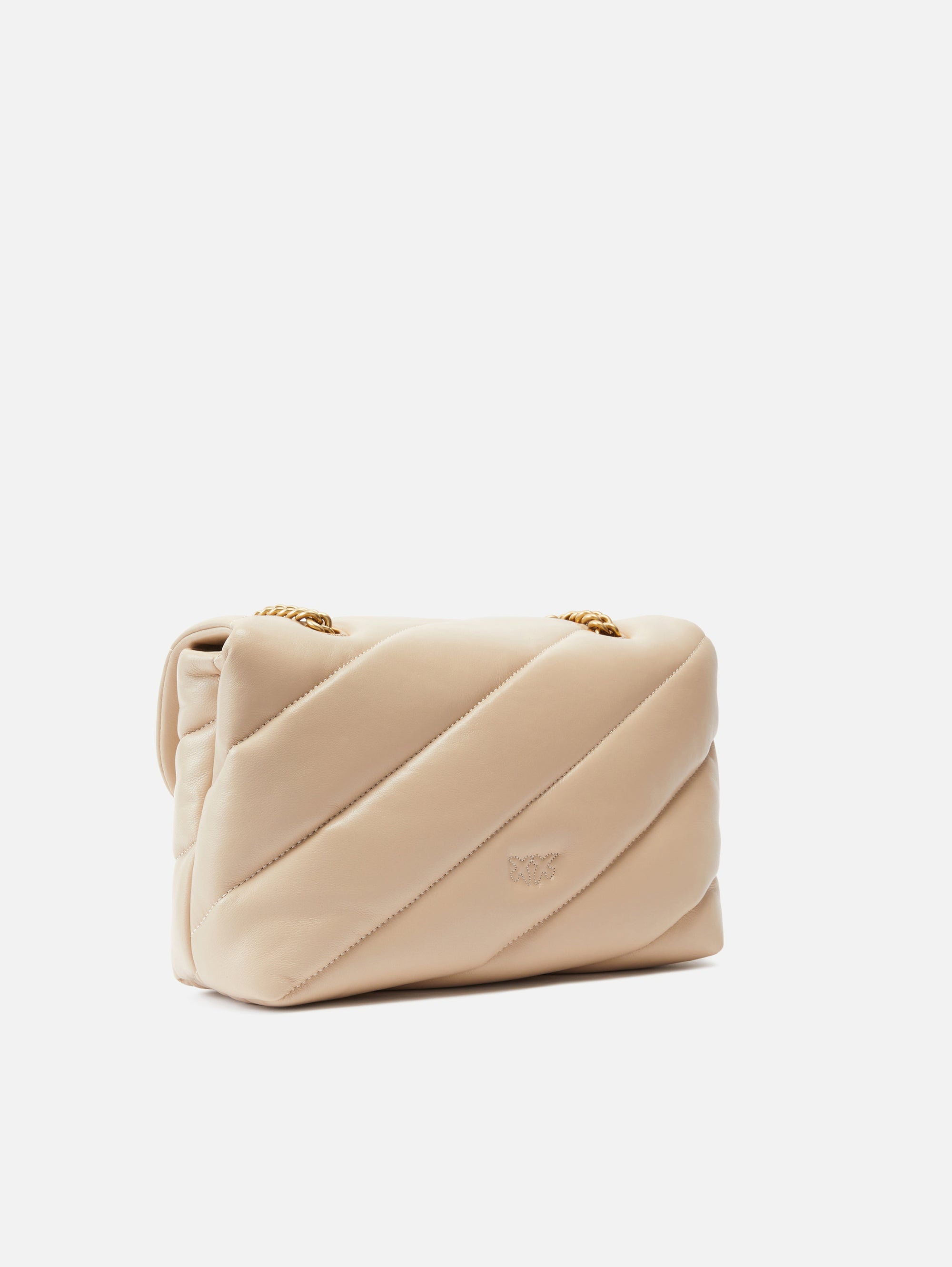 Borsa a tracolla Love Bag Puff in nappa morbida trapuntata con maxi pattern obliquo da donna di Pinko.