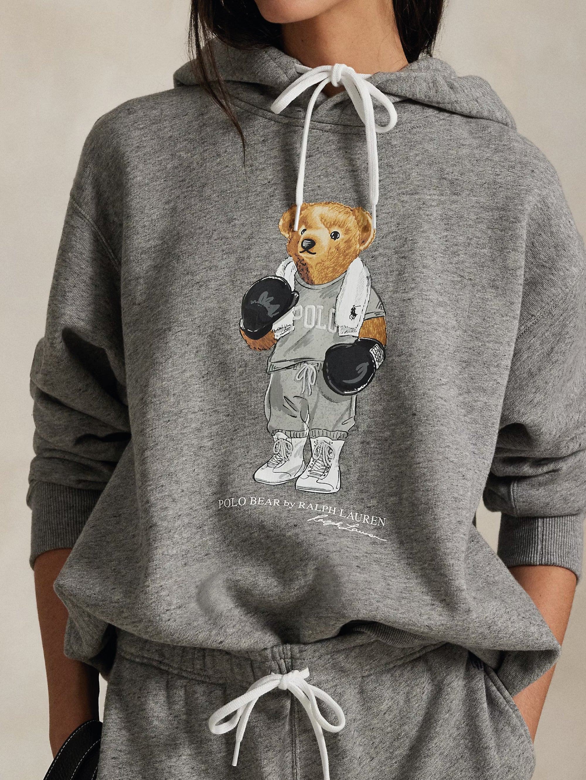 Felpa con cappuccio con stampa Polo Bear in versione boxeur da donna di Polo Ralph Lauren.