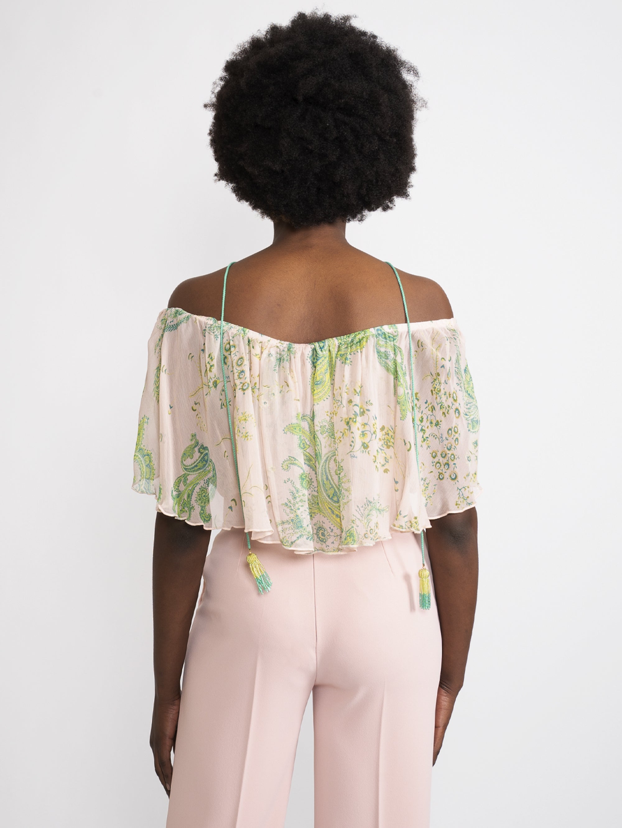 - Drawstring on the neck with back tassels