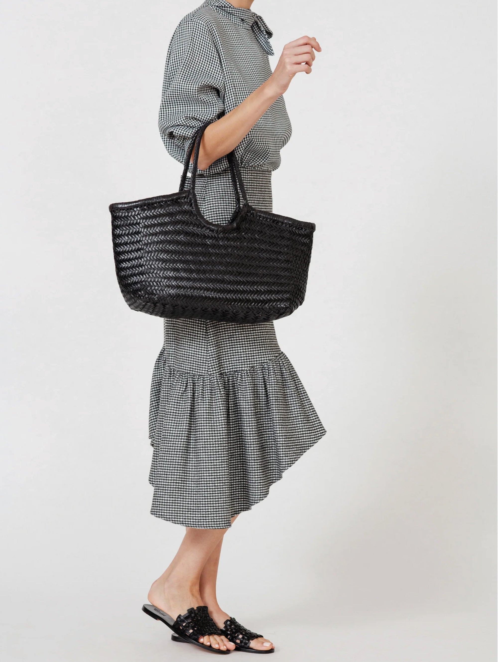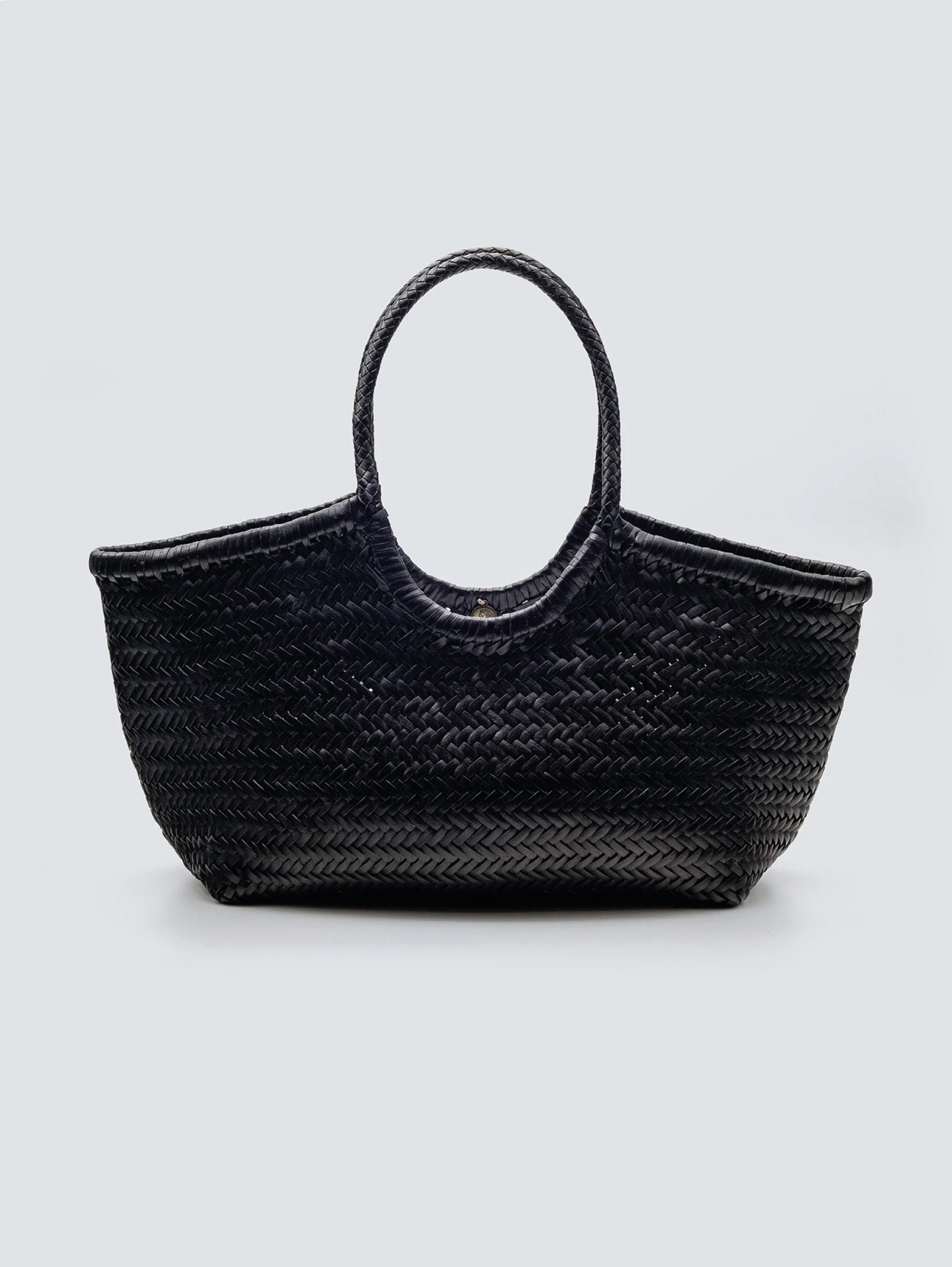 - Borsa a mano ampia realizzata in pelle di vitello intrecciata a mano