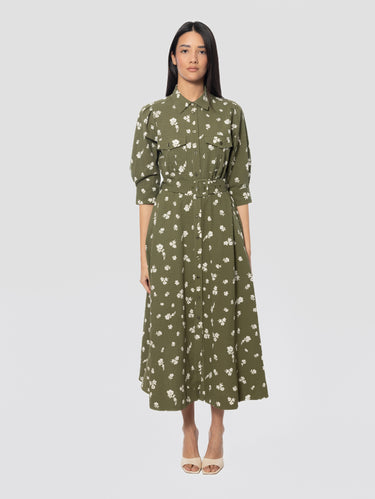 Abito chemisier in tessuto destrutturato con fantasia floreale da donna di Essentiel Antwerp.
