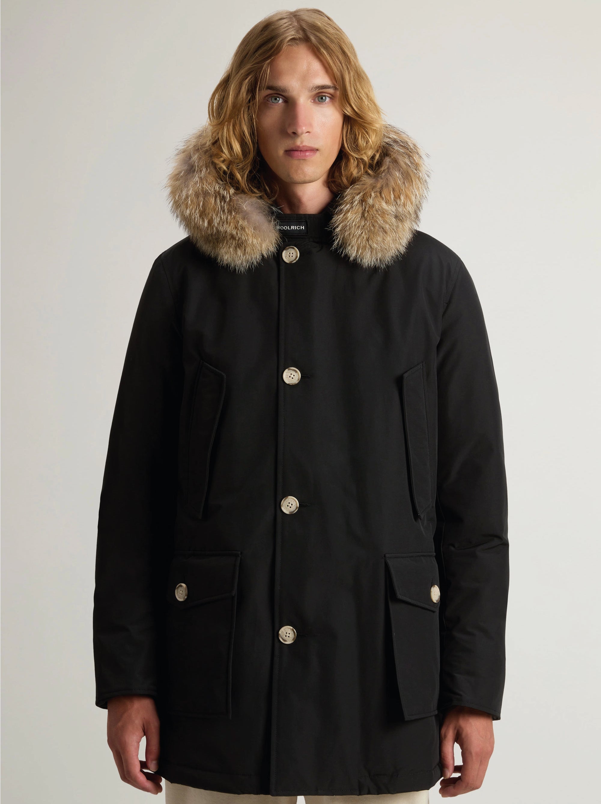 Giaccone parka in ramar con cappuccio con pelliccia removibile da uomo  di Woolrich.