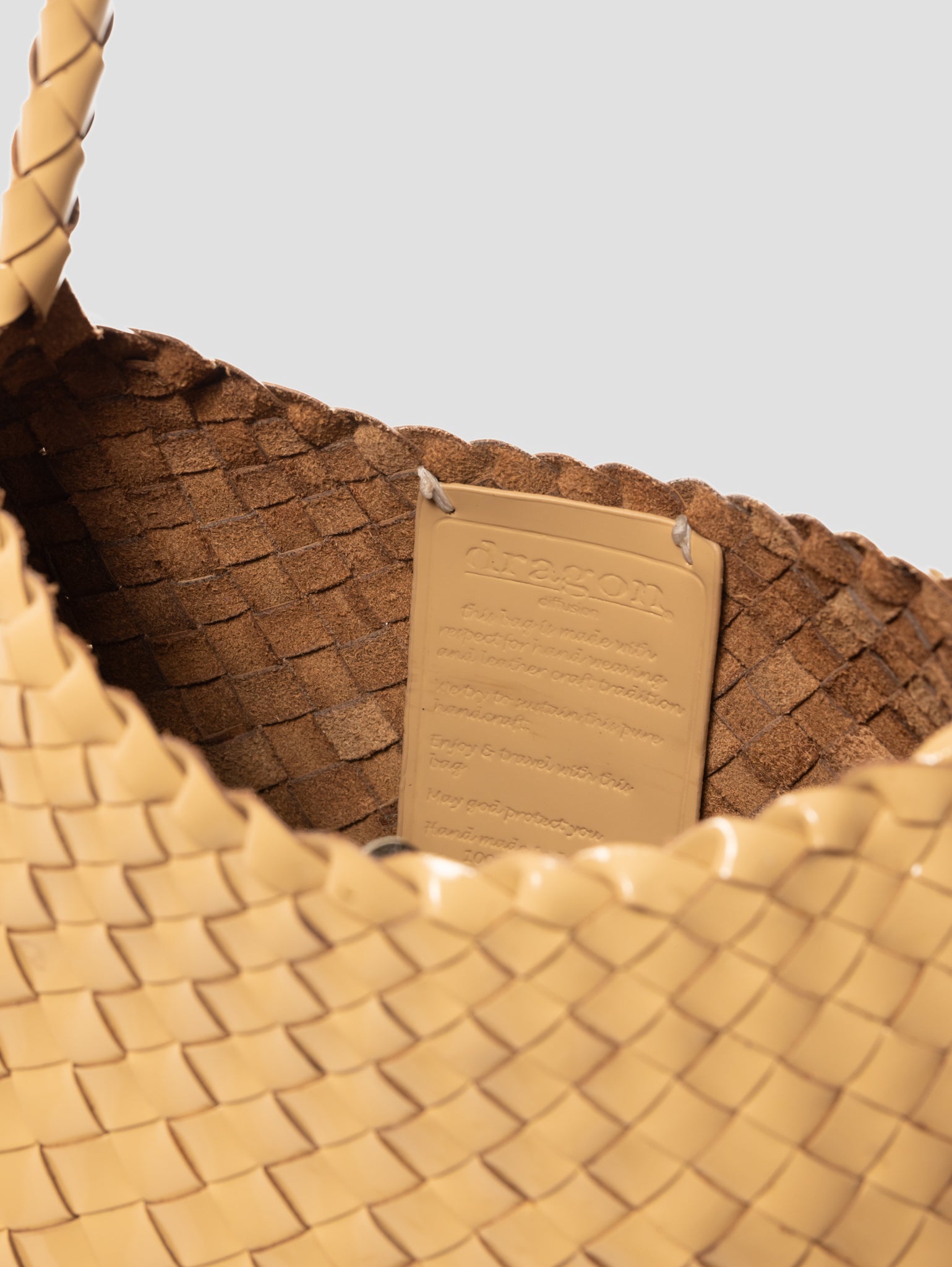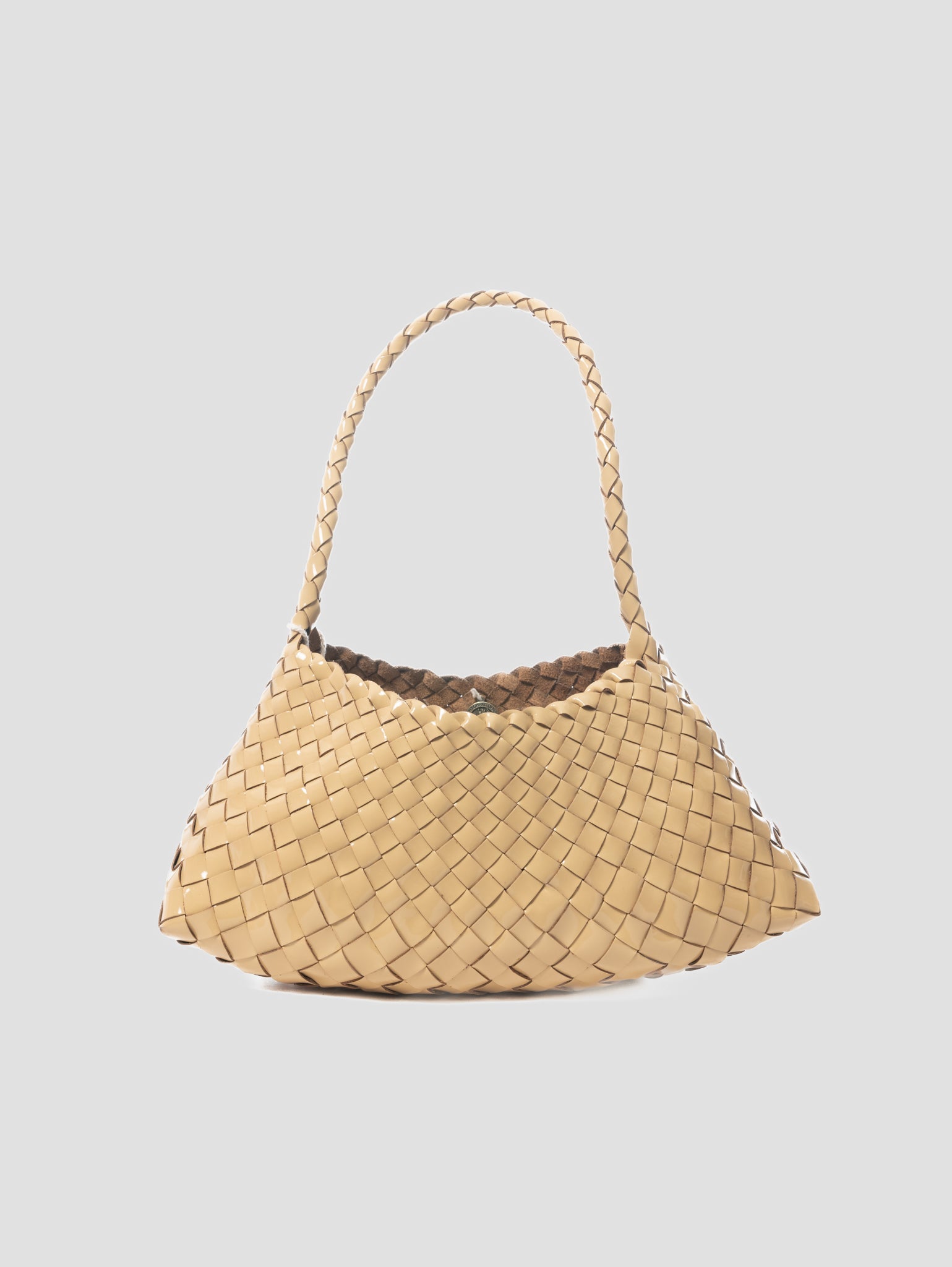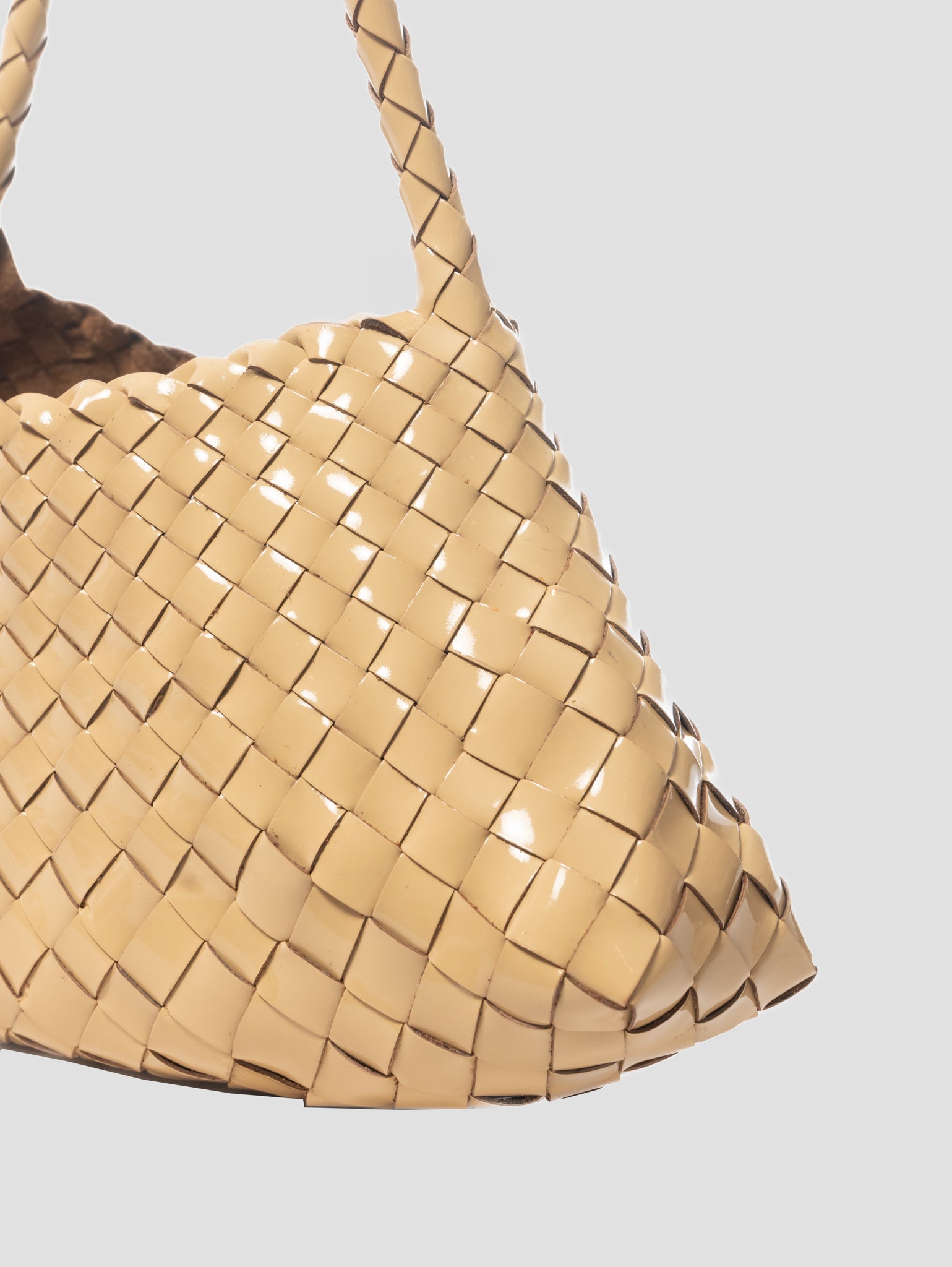 Borsa Baguette in Pelle Lucida Intrecciata Rosanna Mini Patent Beige