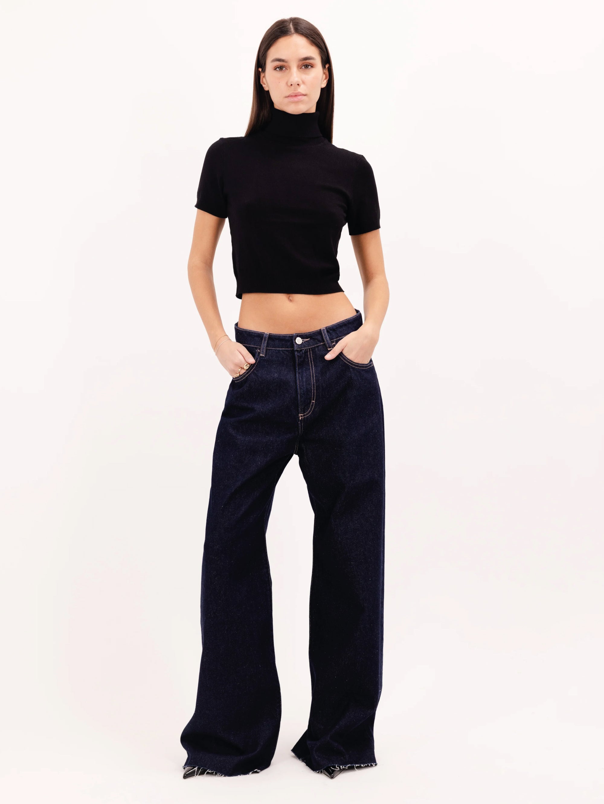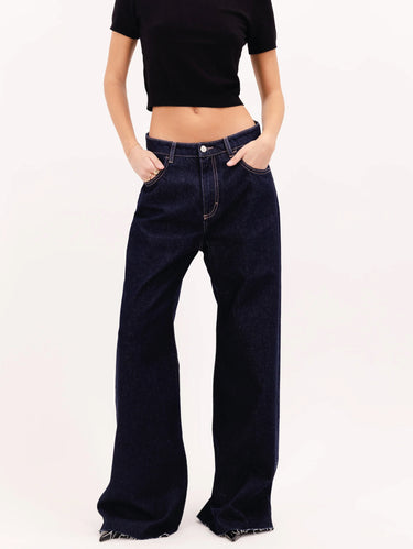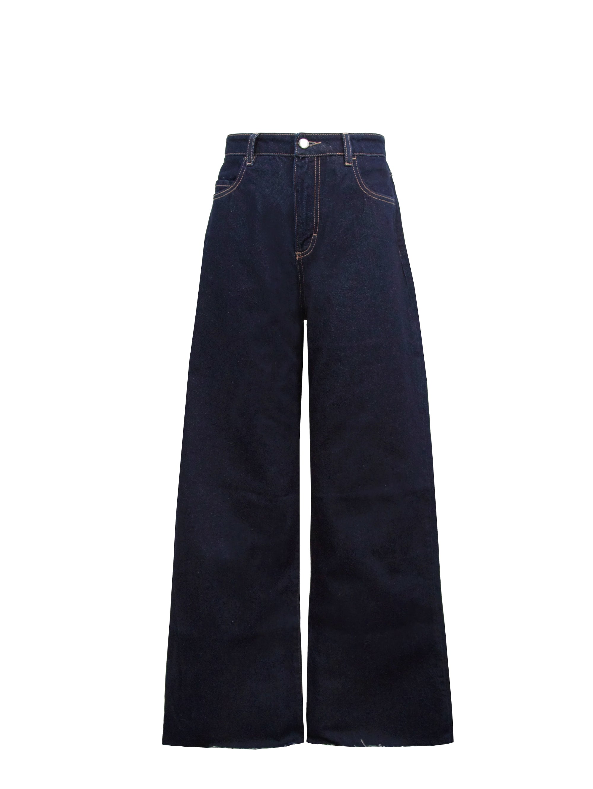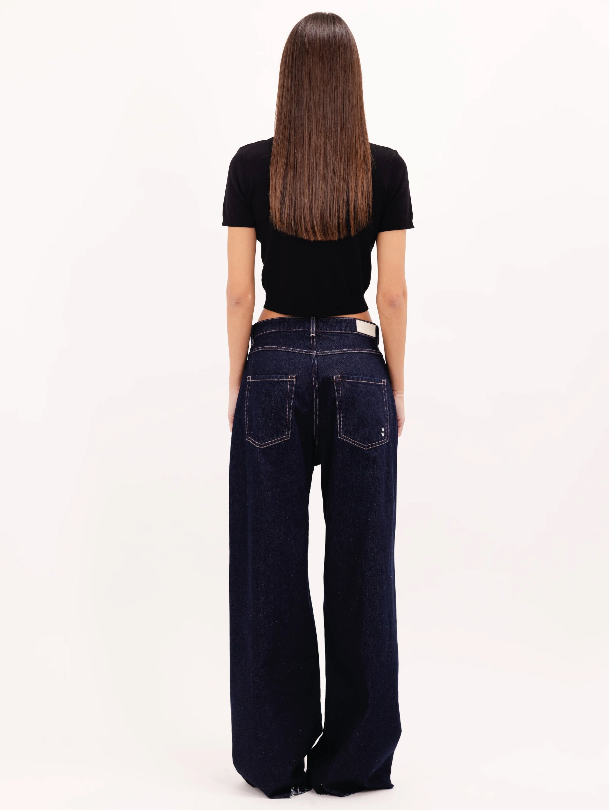 - Jeans wide leg lavaggio scuro con orlo used Debby