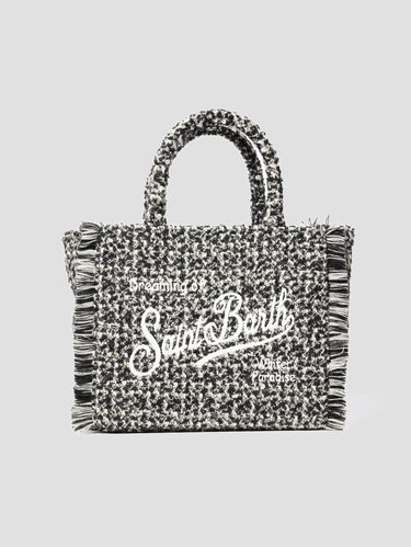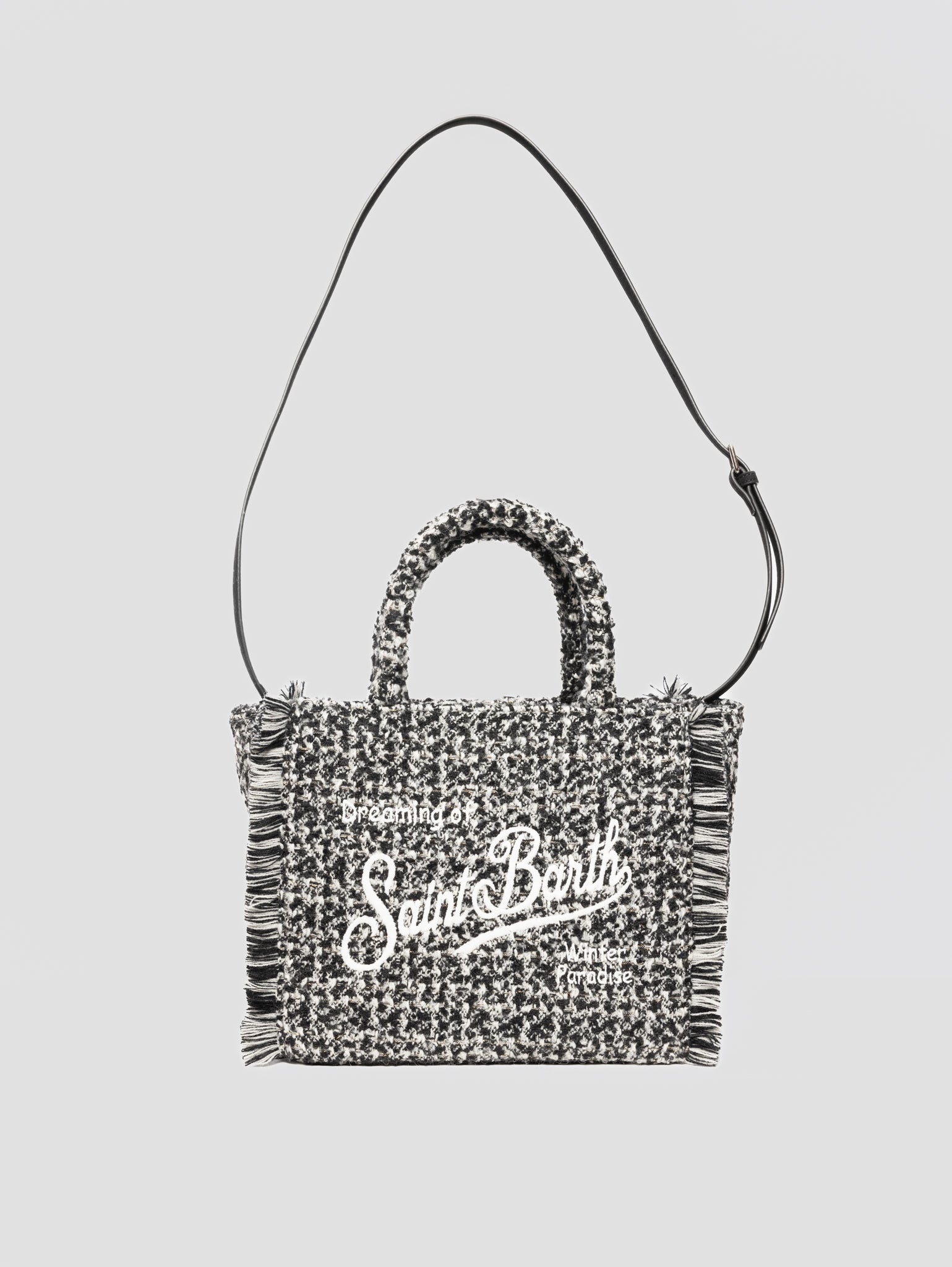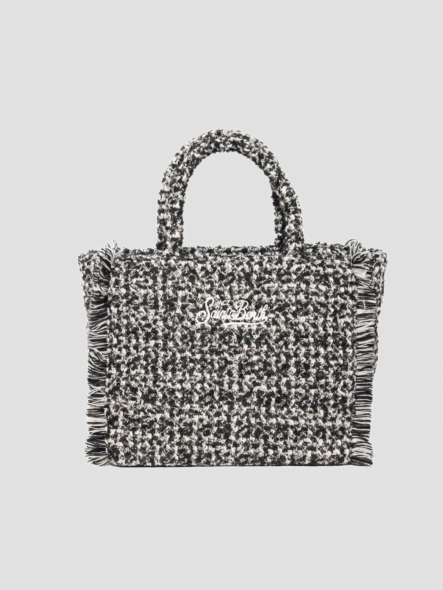 Borsa a mano con tracolla Colette con frange con motivo tweed bianco e nero da donna di Mc2 Saint Barth.