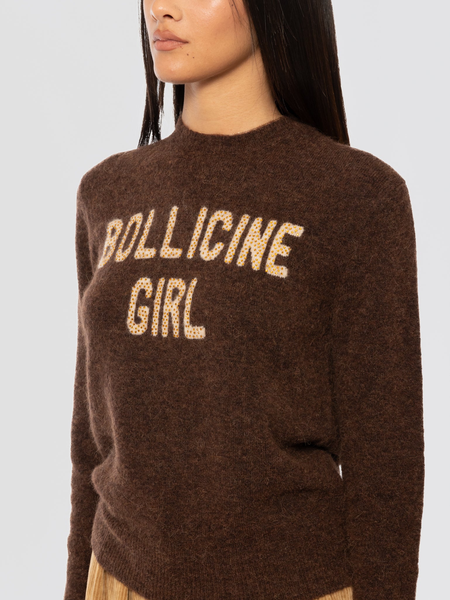 Maglione Girocollo Bollicine Girl con Strass Marrone