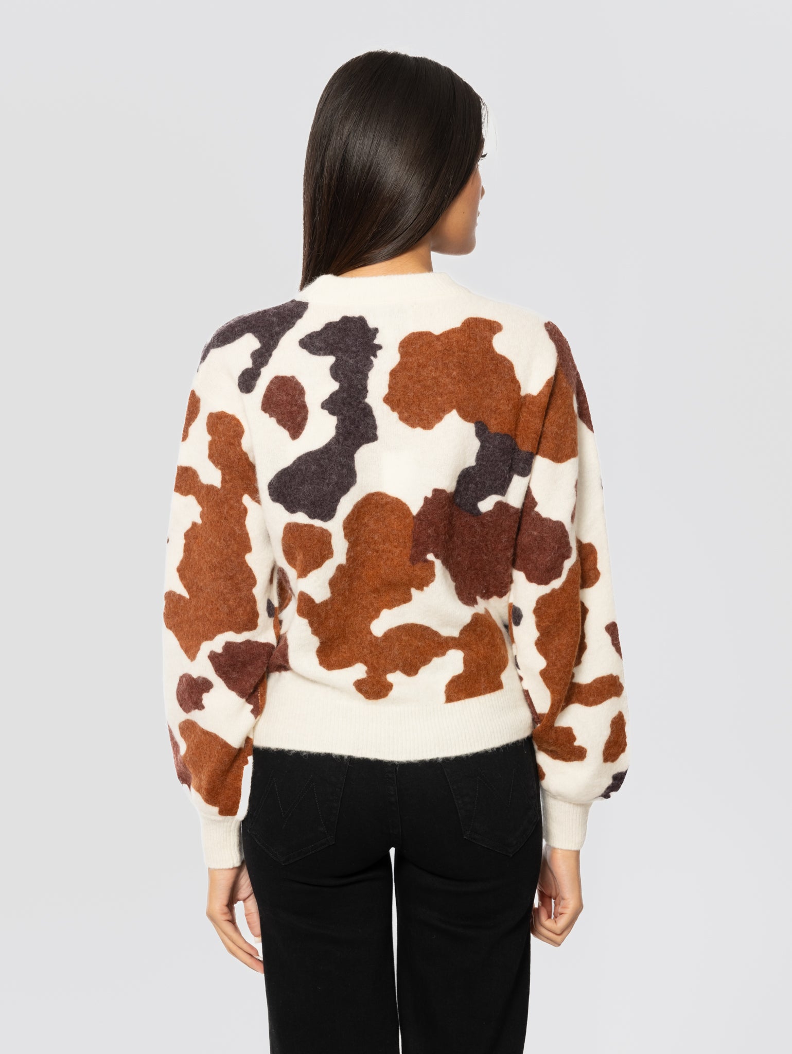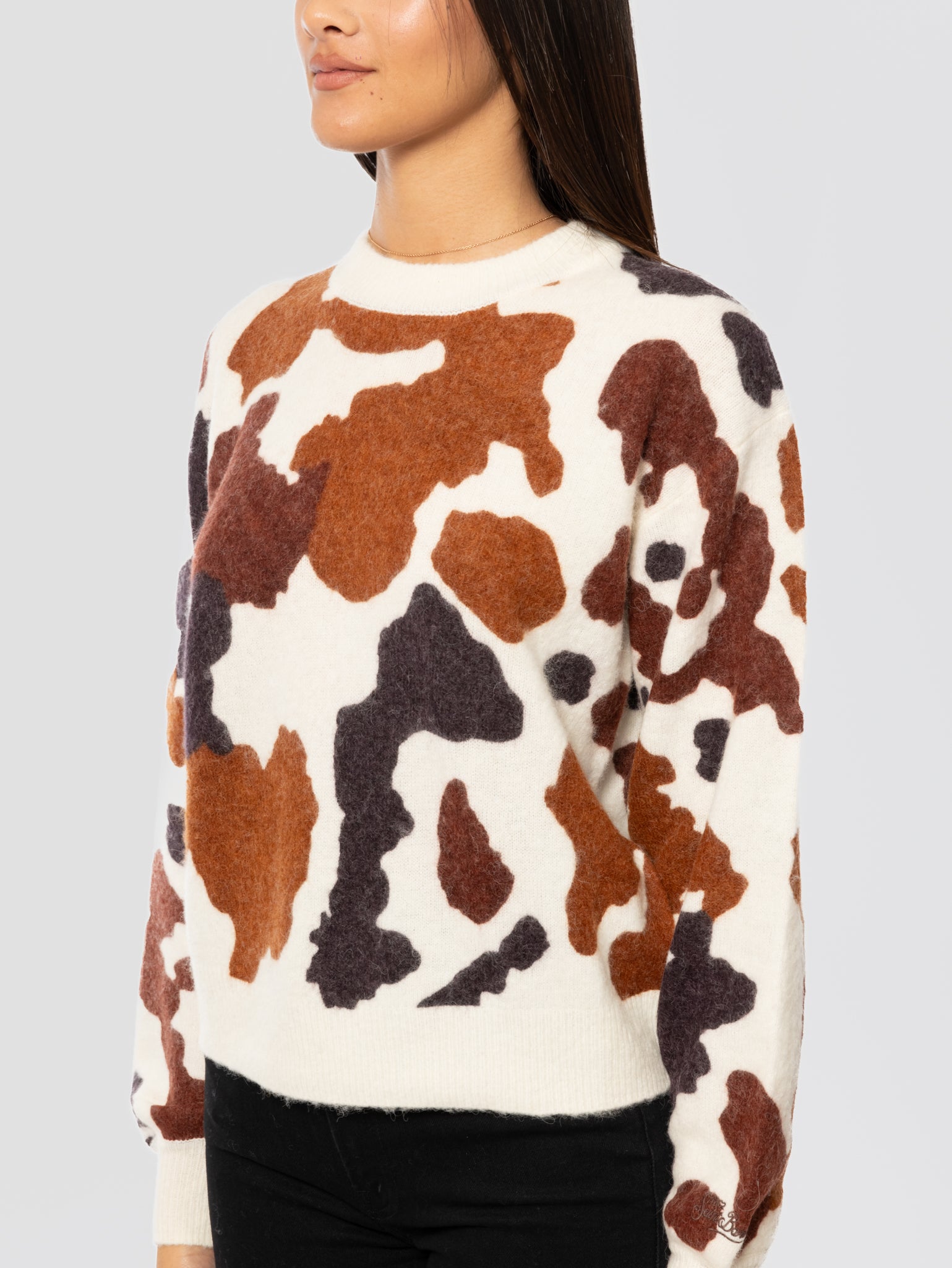 Maglione Girocollo Danya con Stampa COw Skin Marrone