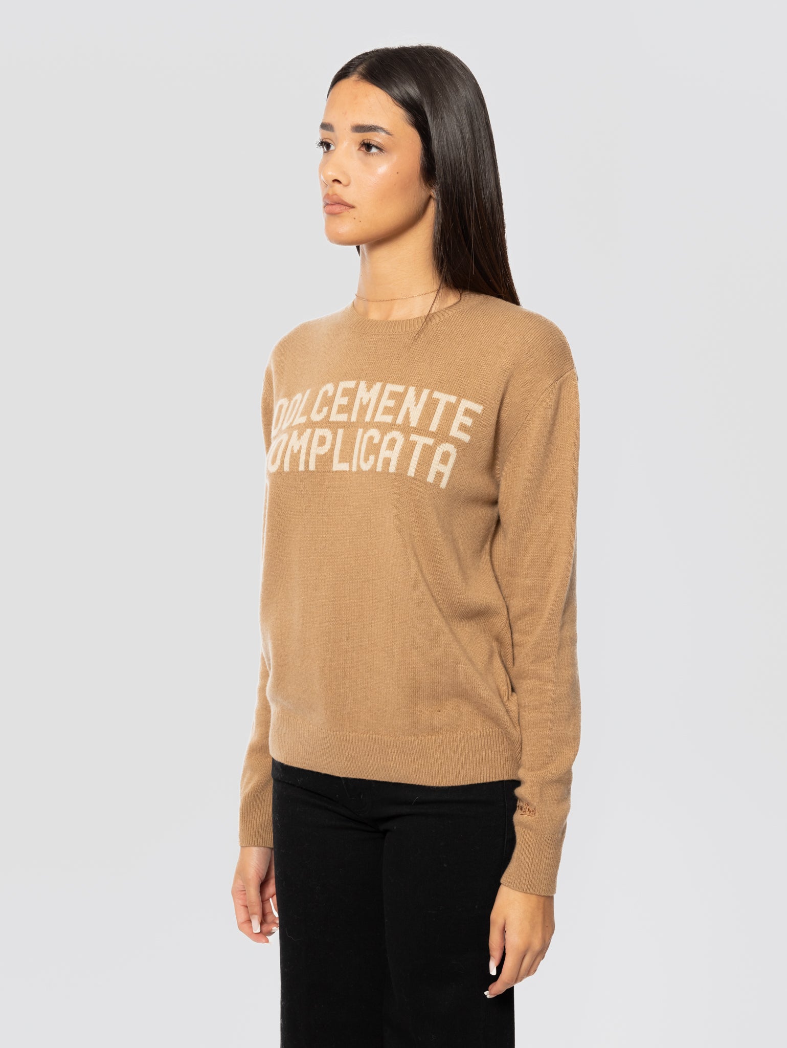Maglione Girocollo Stampa Jacquard Dolcemente Complicata Cammello