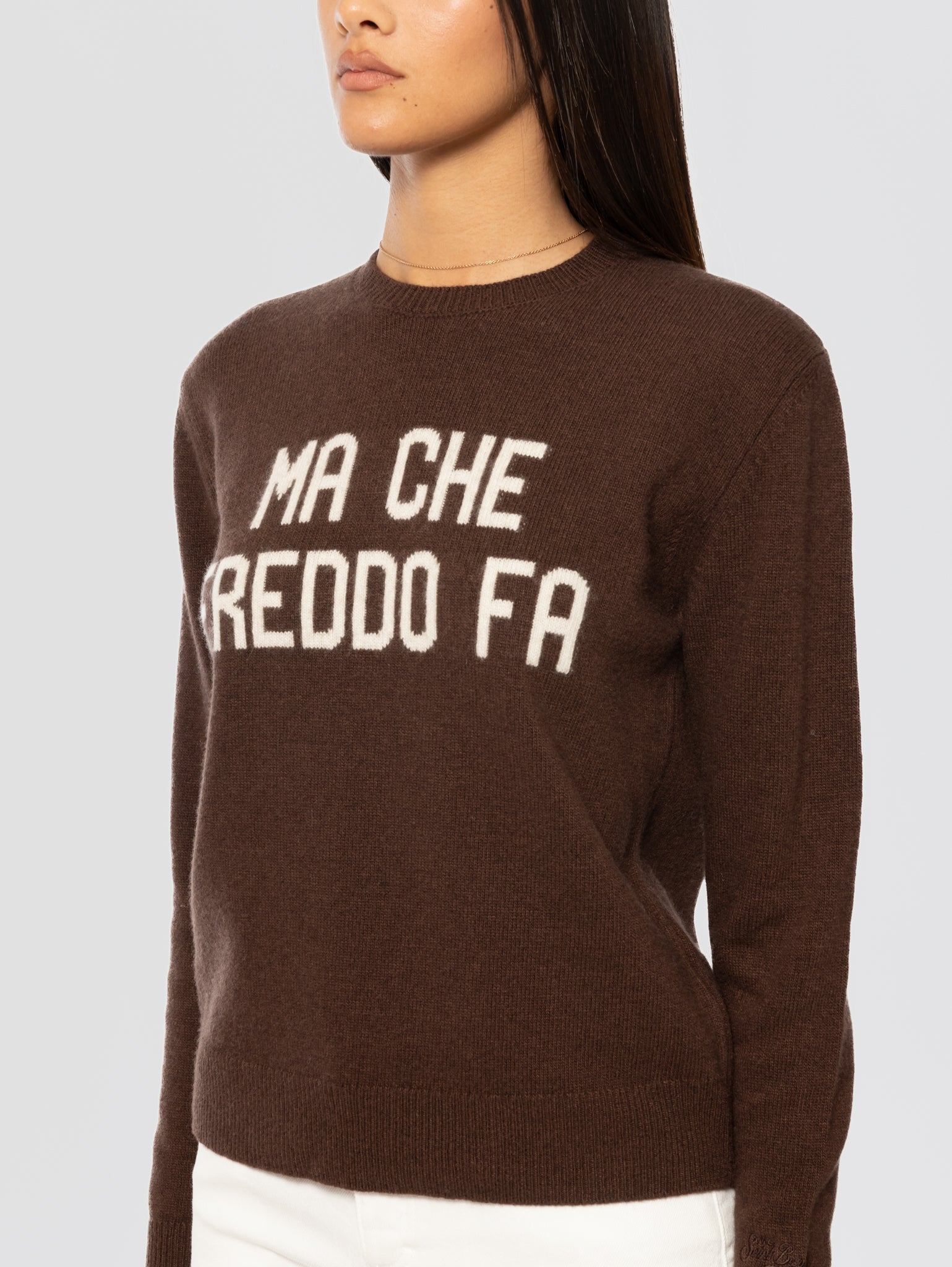 Maglione Girocollo Stampa Jacquard Ma Che Freddo Fa Marrone