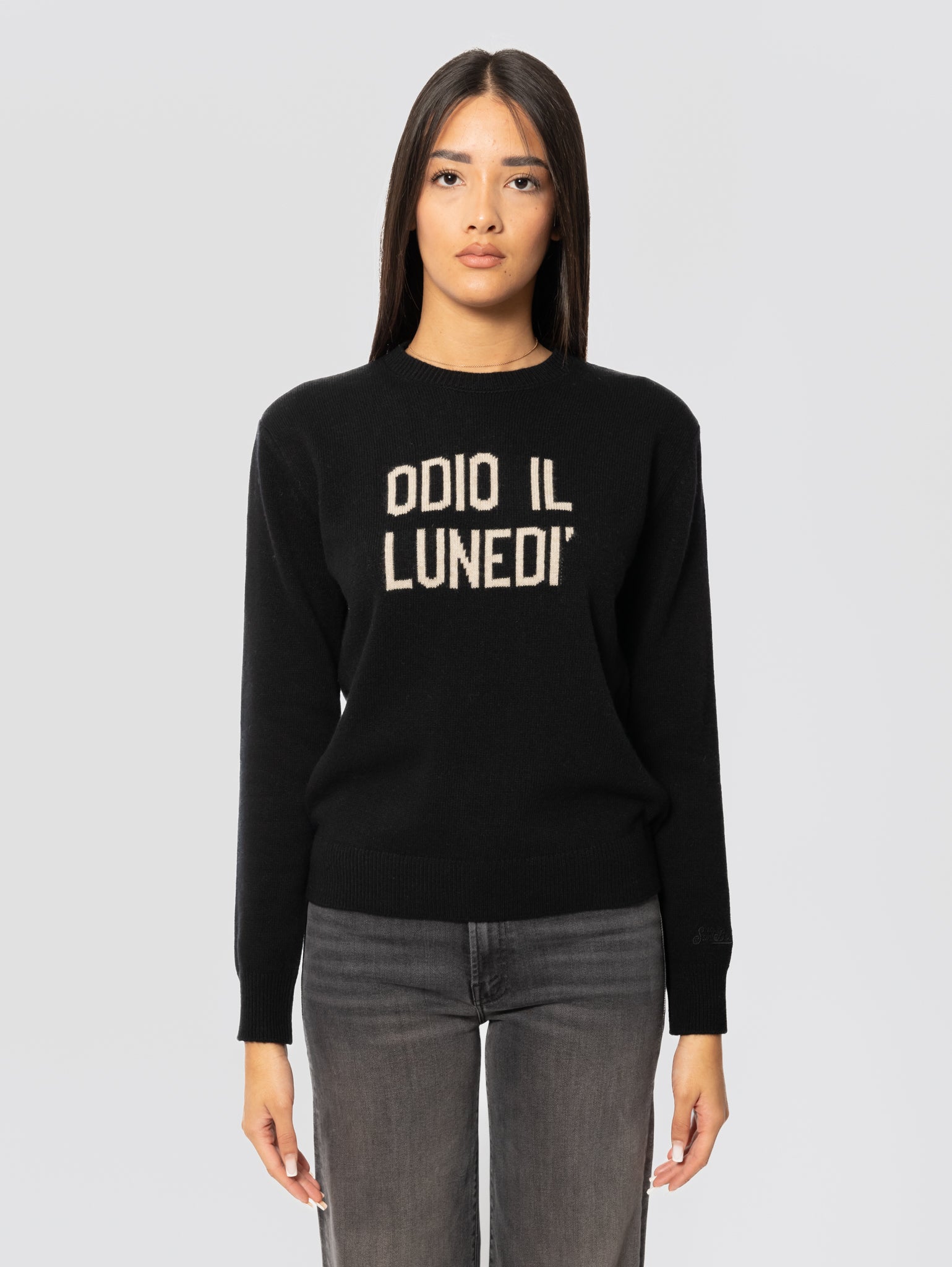Maglione Girocollo Stampa Jacquard Odio il Lunedì Nero