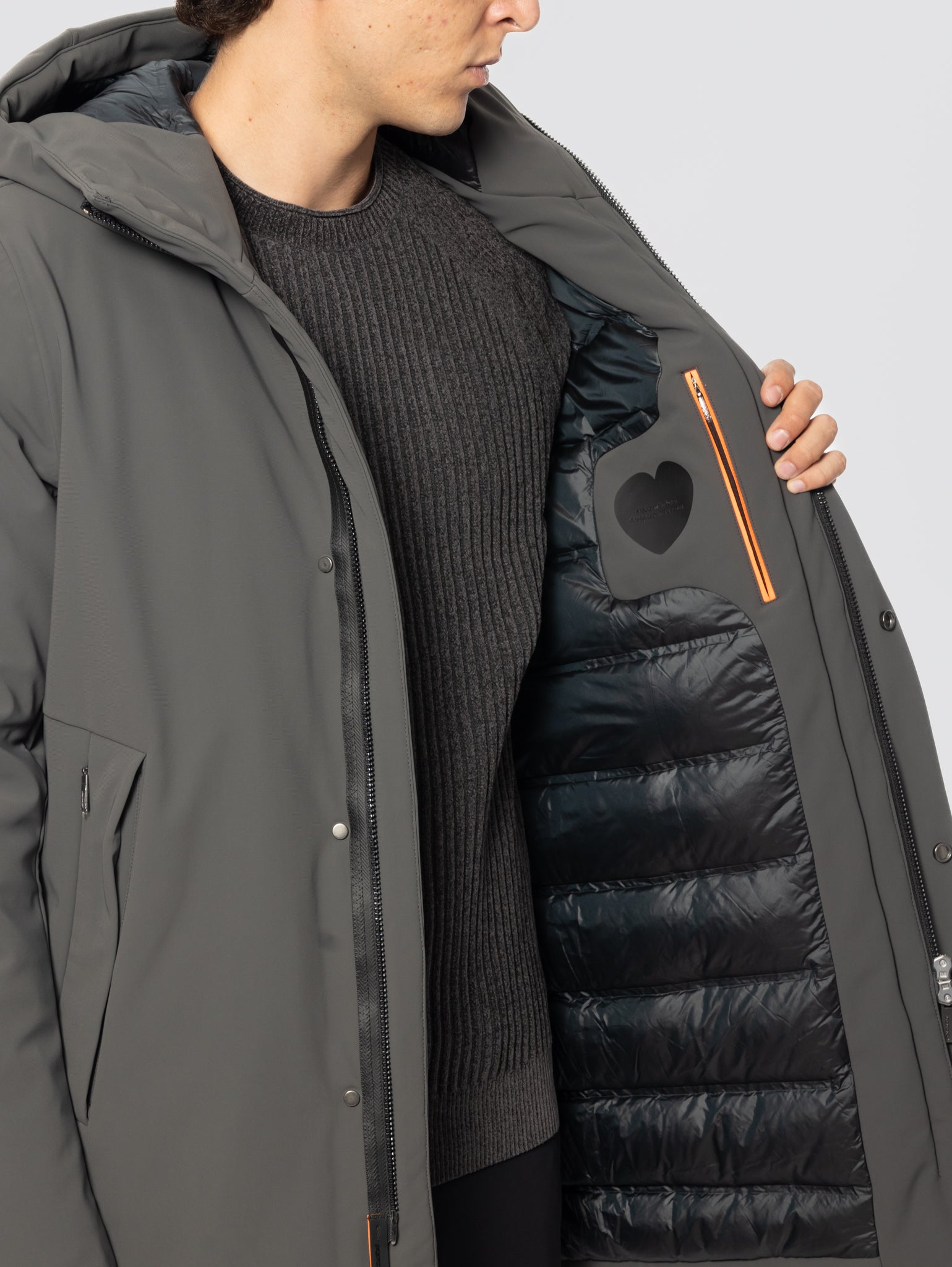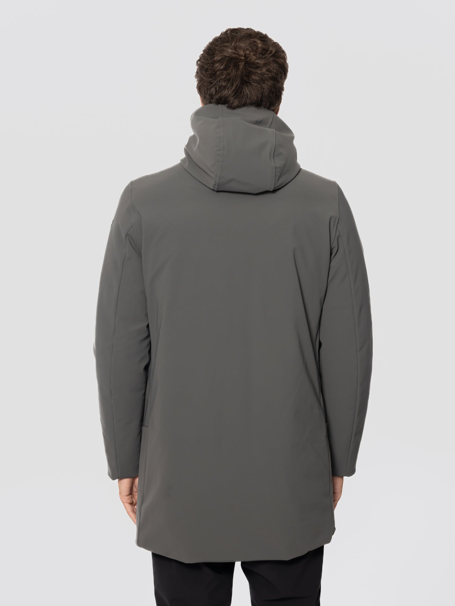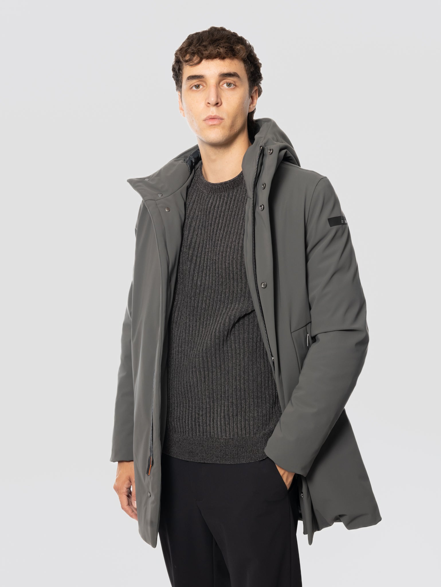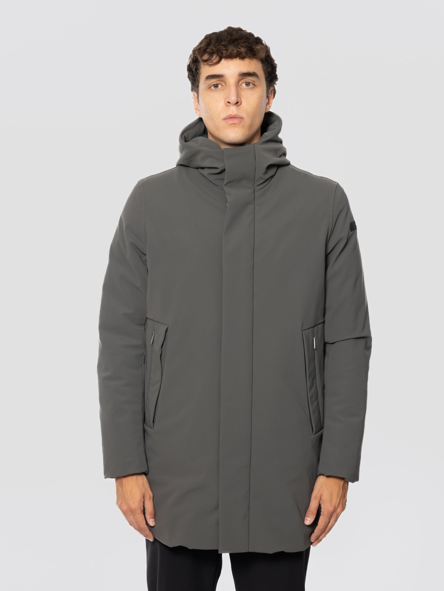 Giaccone eskimo con cappuccio fisso imbottito in tessuto surflex opaco modello W25002 da uomo di RRD.