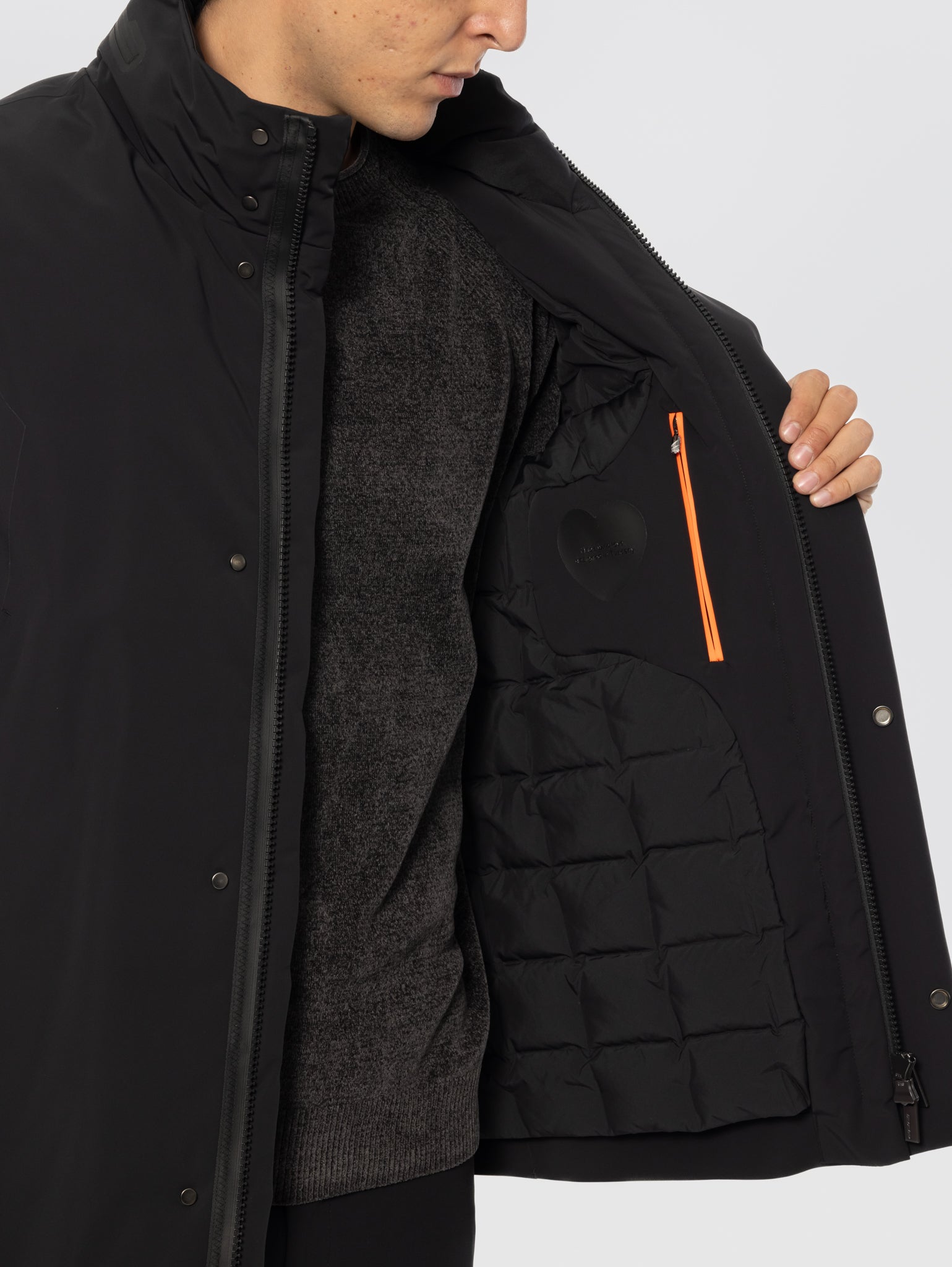 - Imbottitura in piuma d'anatra 90/10, contenuta nel tubico "square" dell'esclusivo sistema Floating Shield, assicura isolamento dal freddo, comfort e un fit diritto e impeccabile