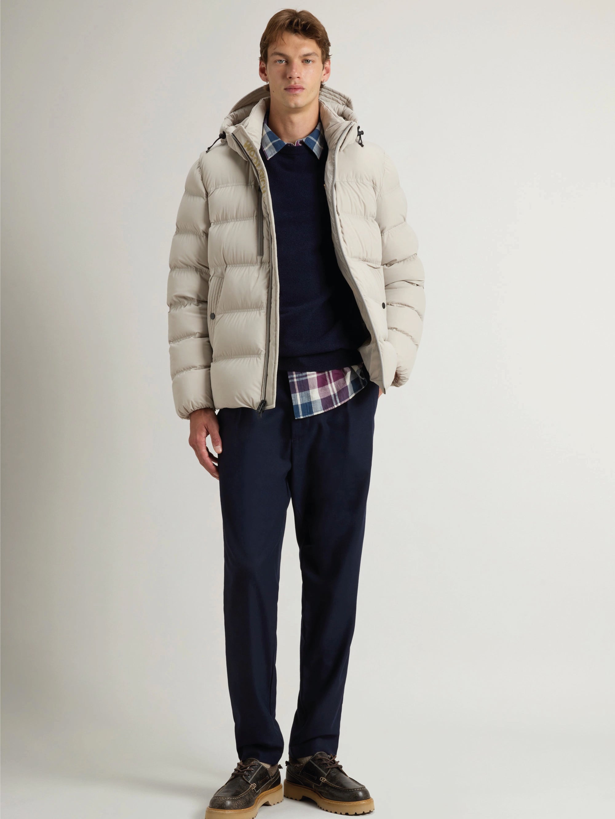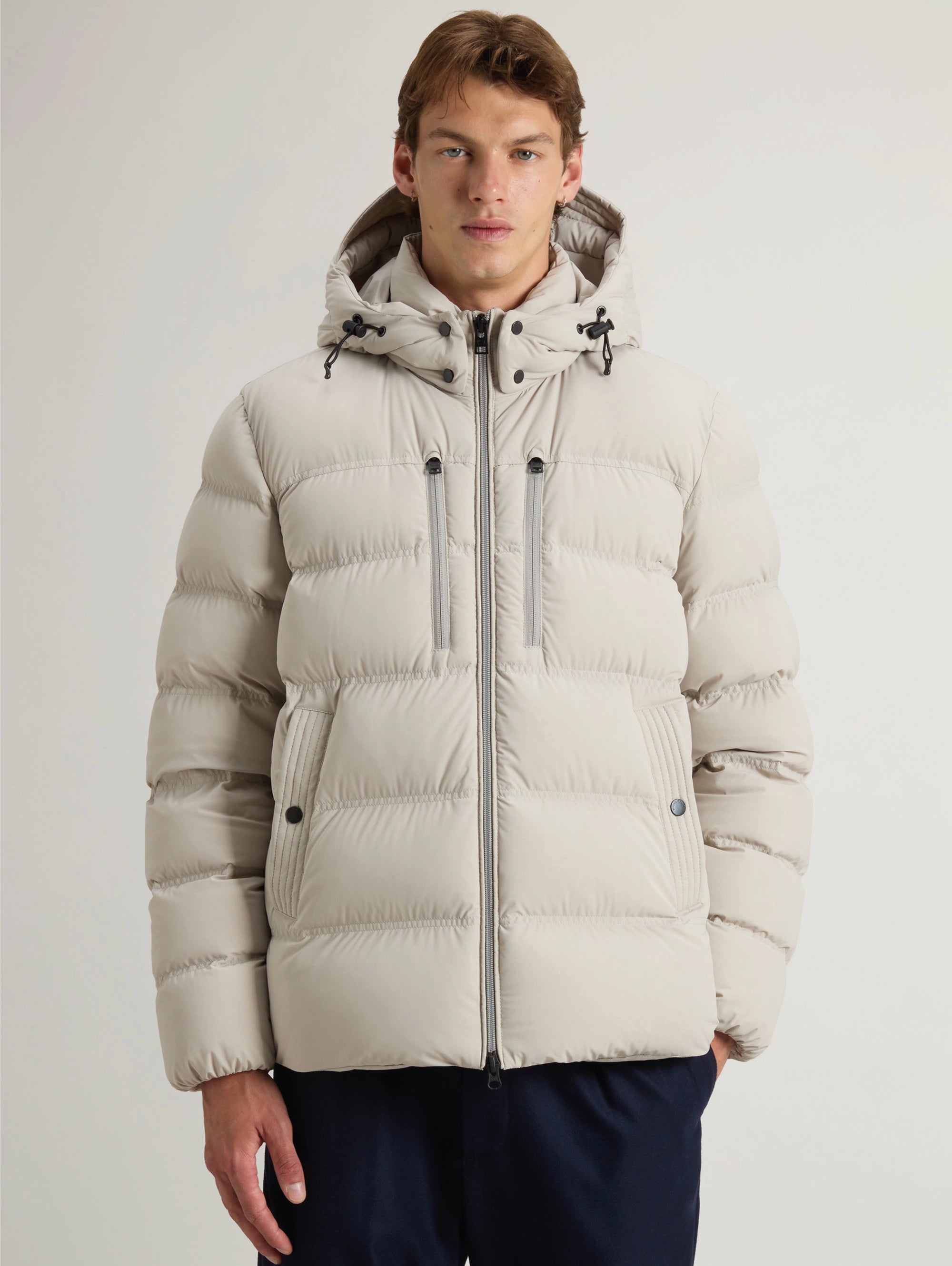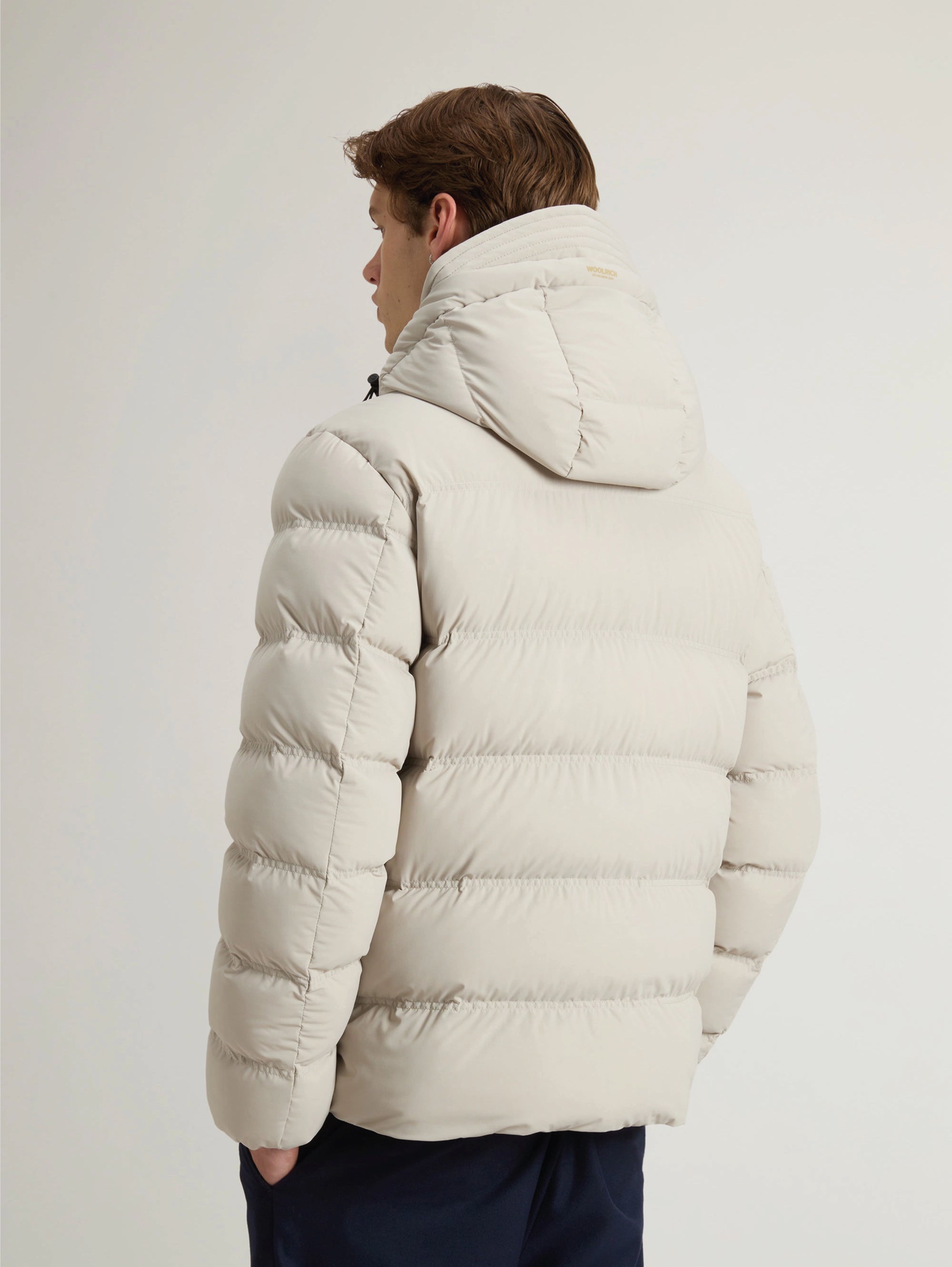 Piumino corto in nylon stretch opaco Puffer Jacket da uomo di Woolrich.