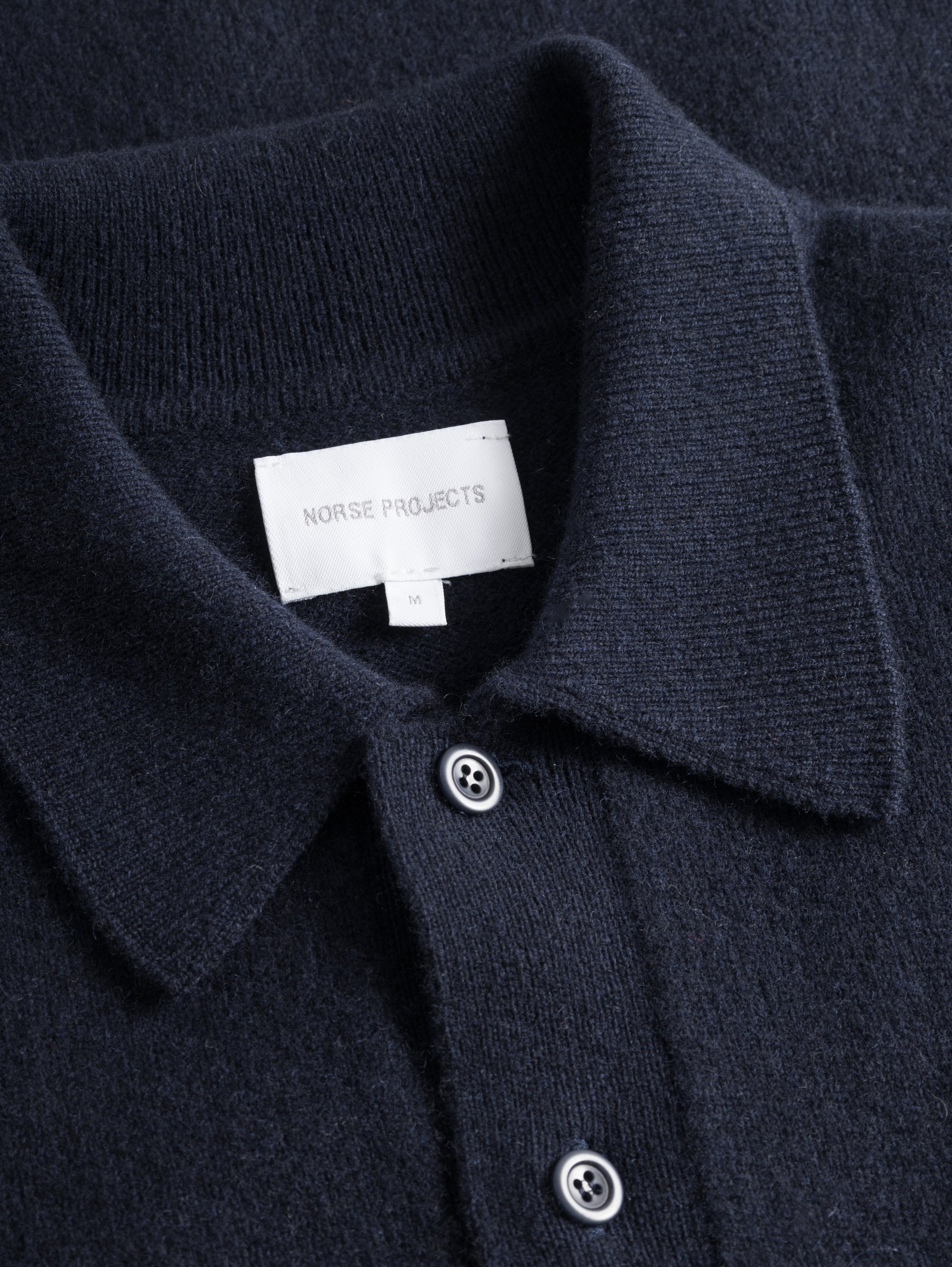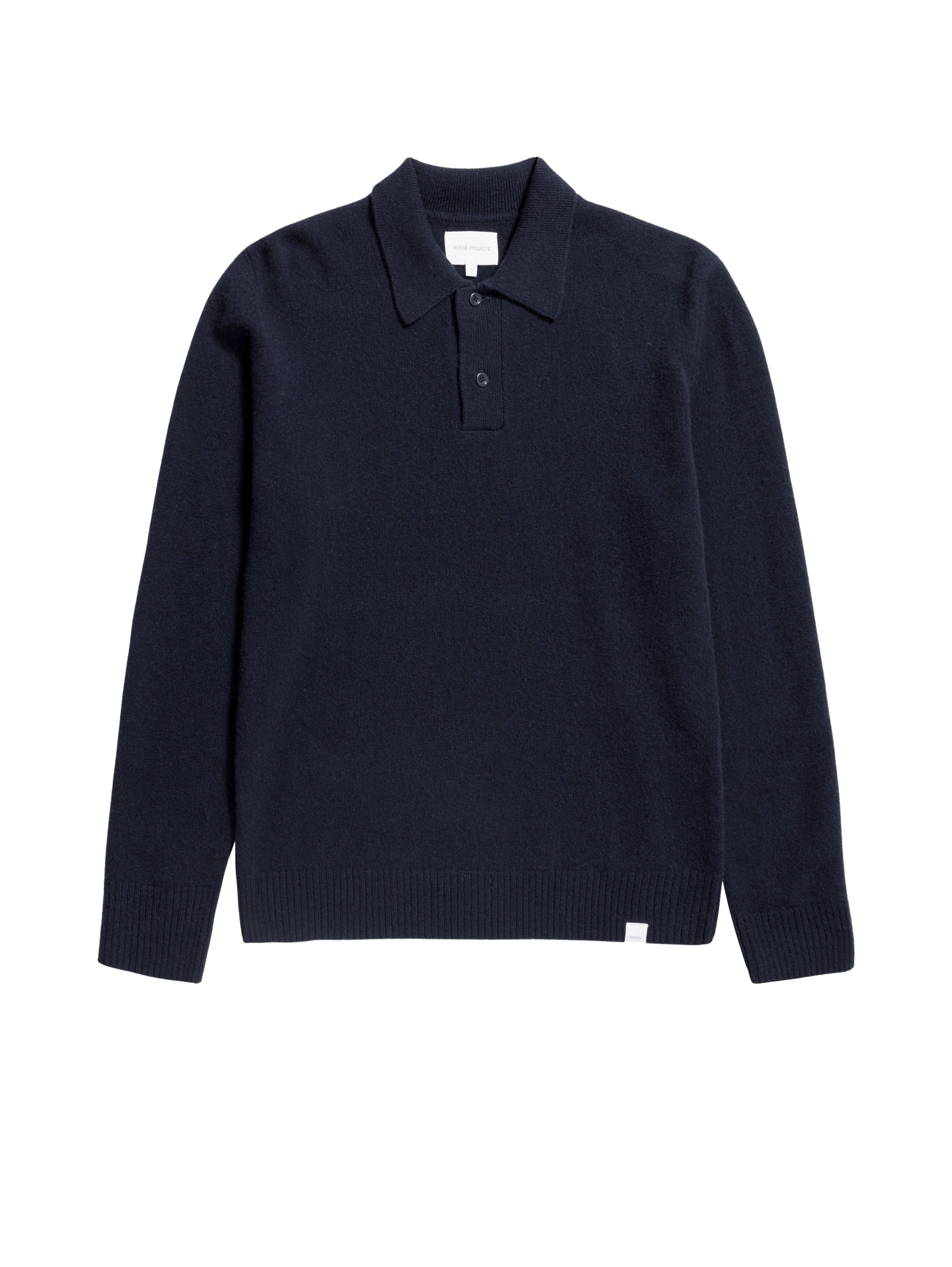 Long-sleeved lambswool merino wool knitted polo shirt for men by Norse Project.