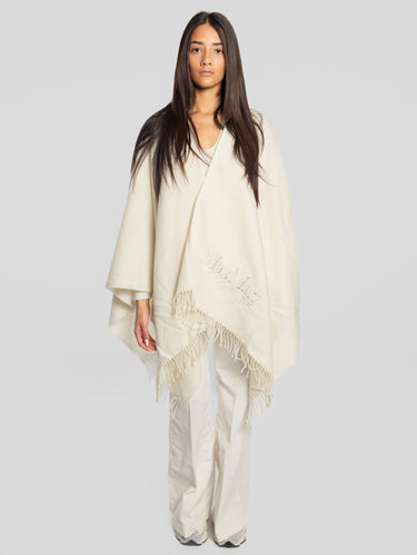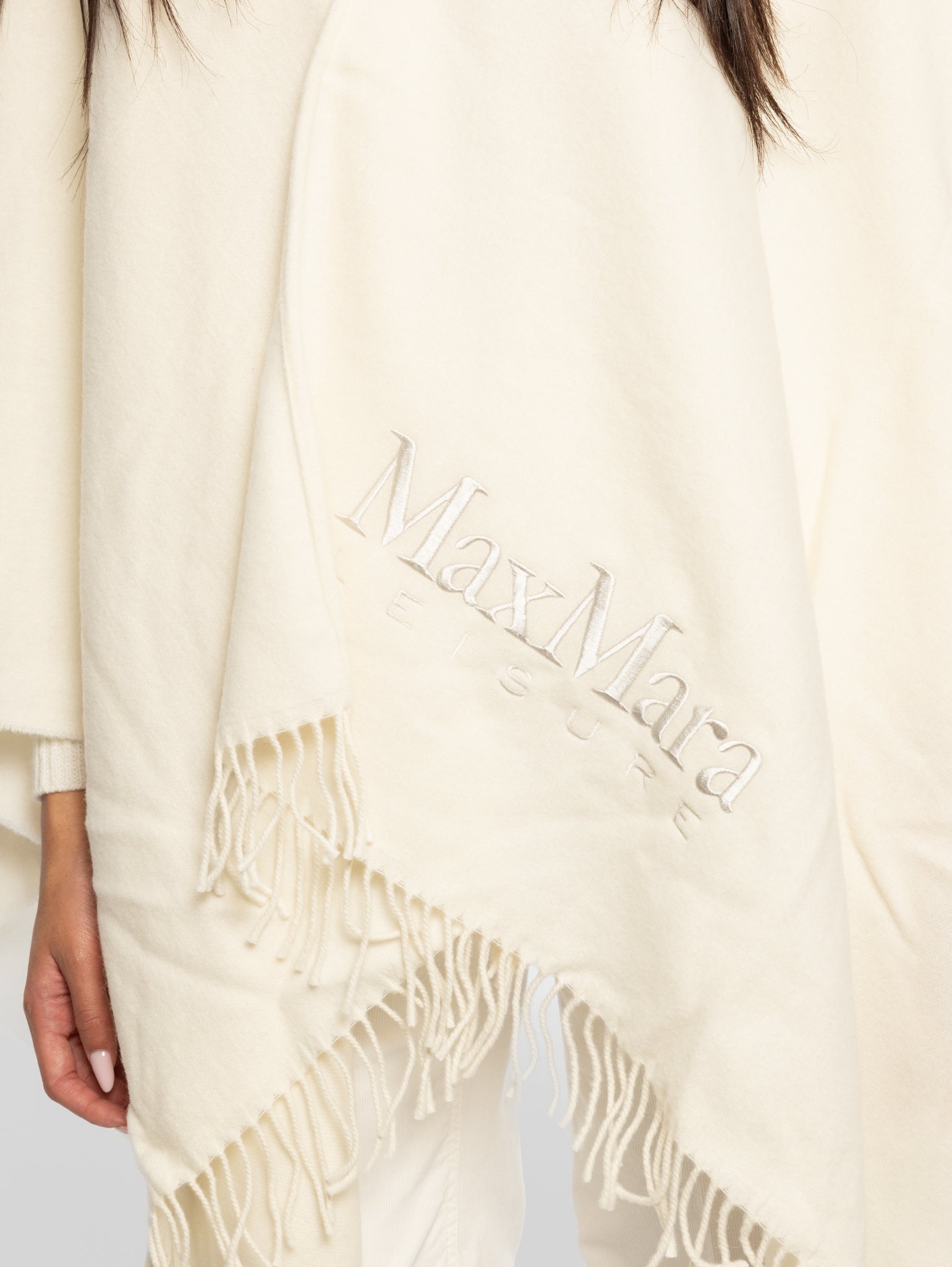 Poncho in wool and technical fabric finished with fringes at the bottom and embroidered Martora logo for women by Max Mara Leisure.