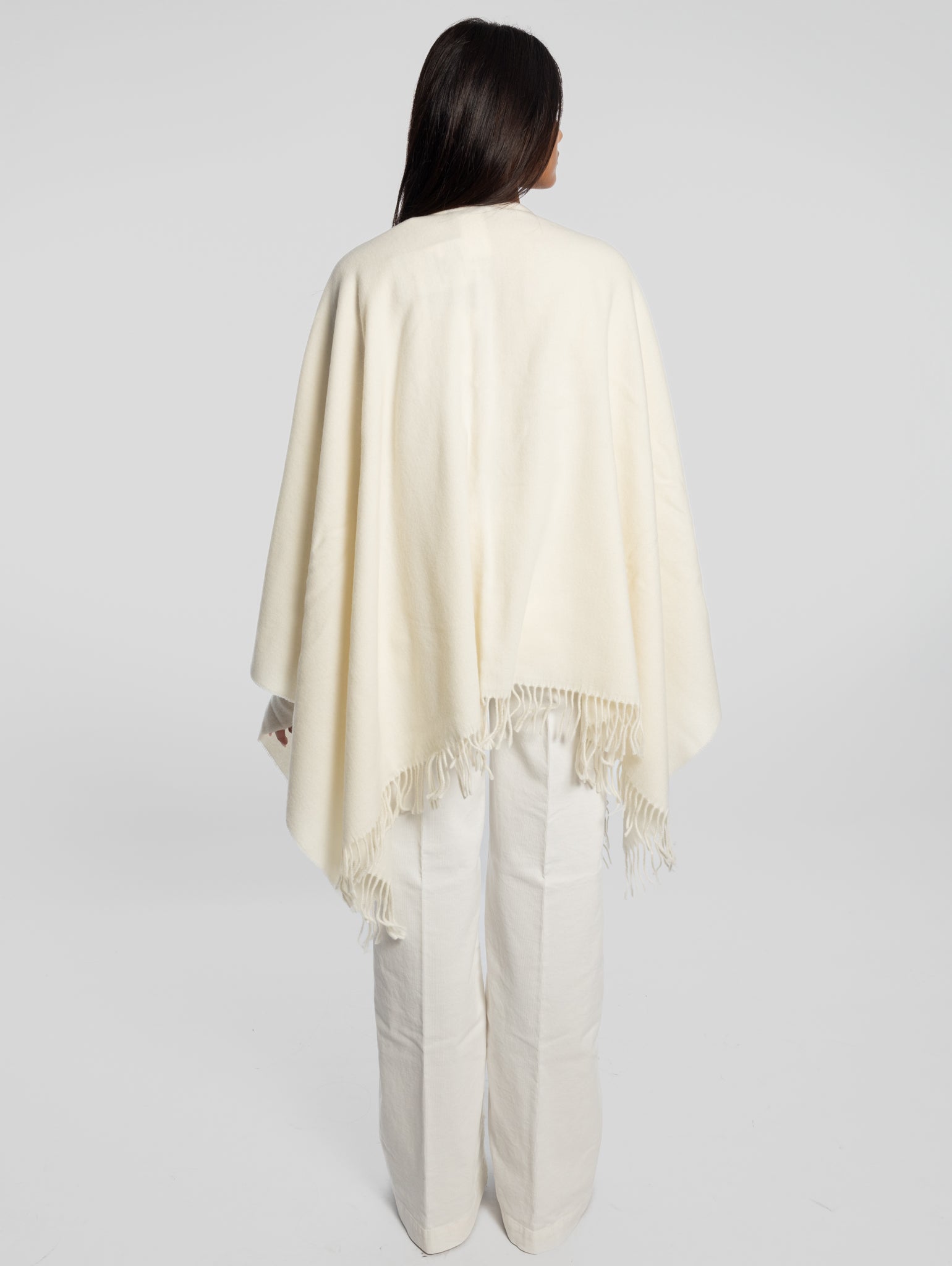 - Poncho finished with fringe details at the bottom and contrasting embroidered logo