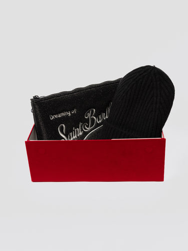Box con Cappello in Lana e Pochette in Lurex Nero