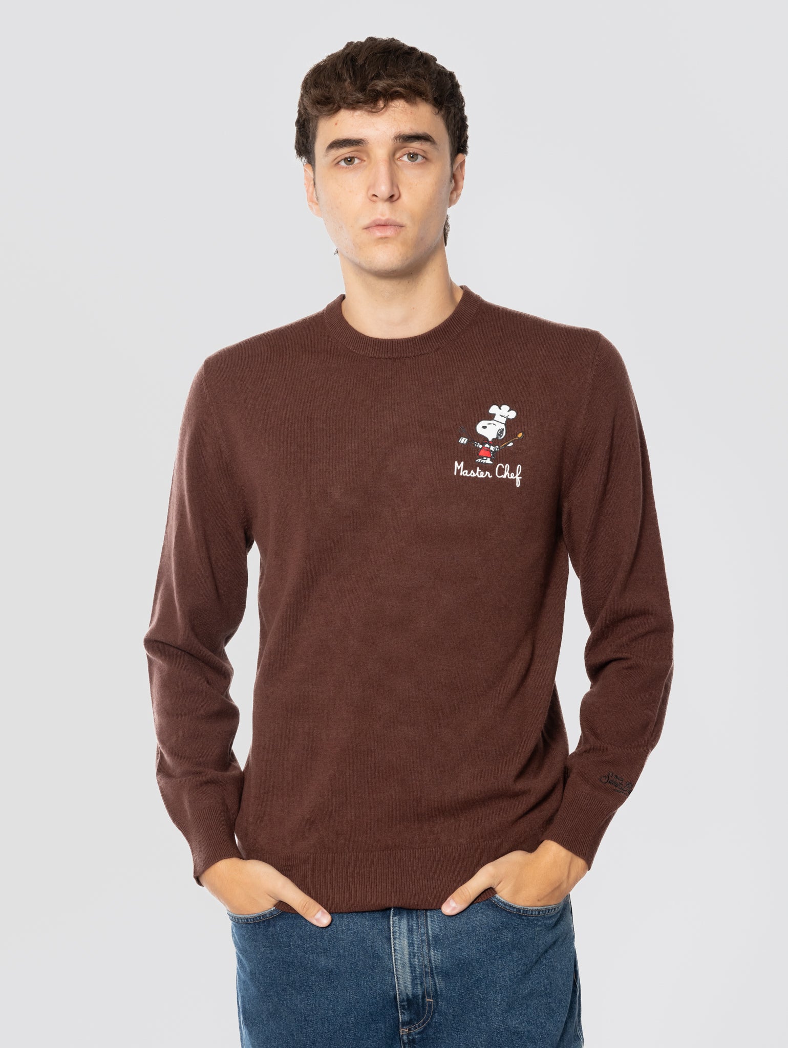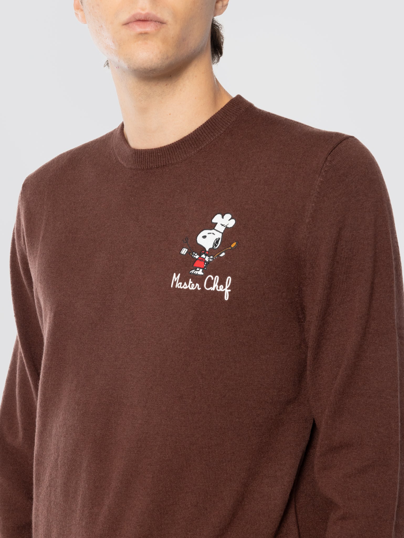 Maglione Girocollo con Ricamo Snoopy Master Chef Marrone
