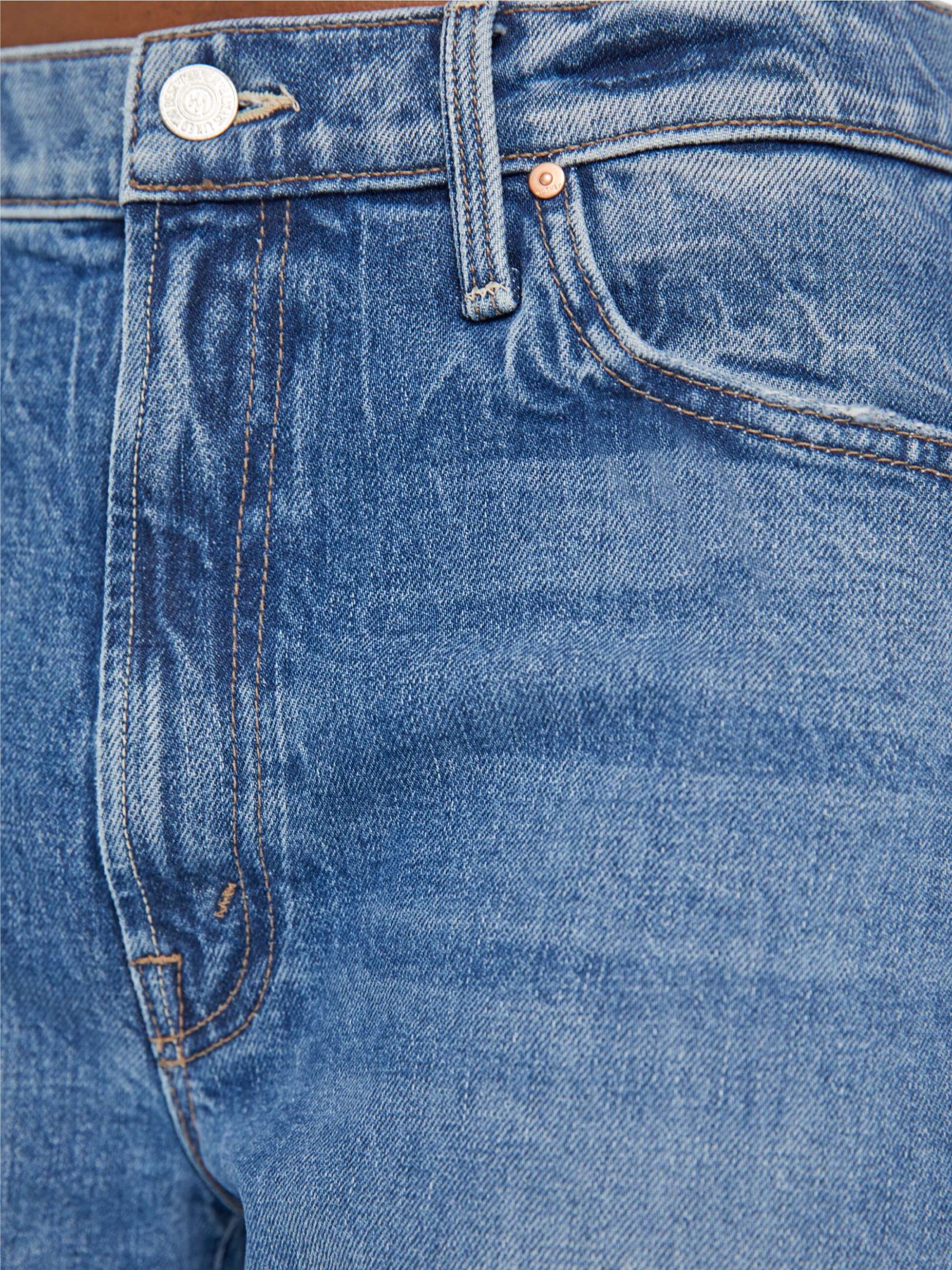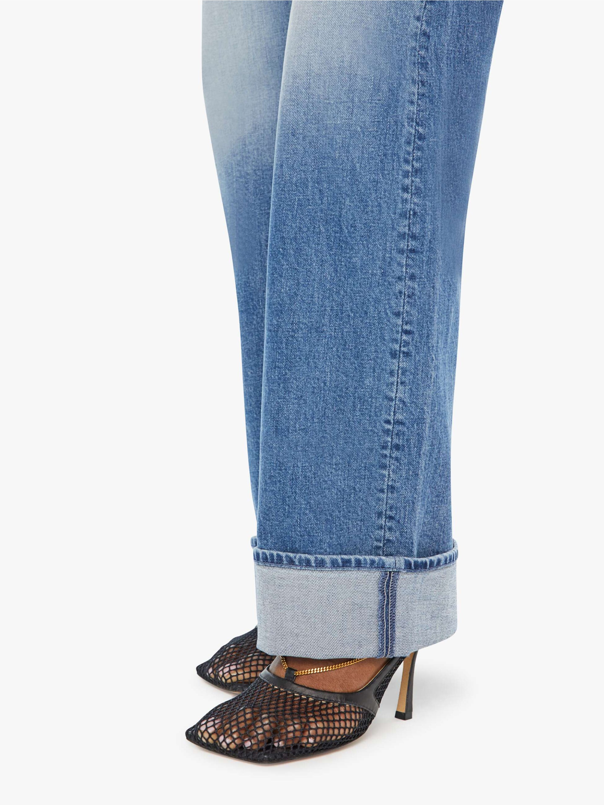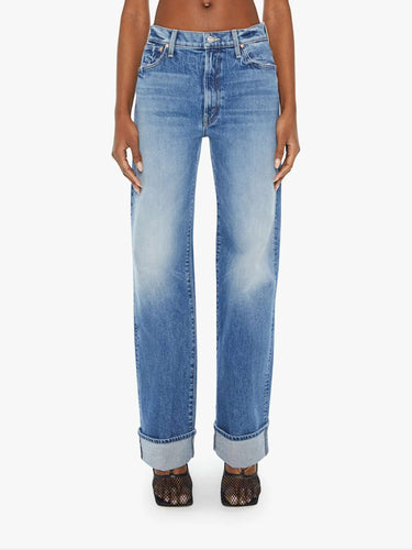 Wide low waist jeans with cuffs, women's model by Mother Denim.