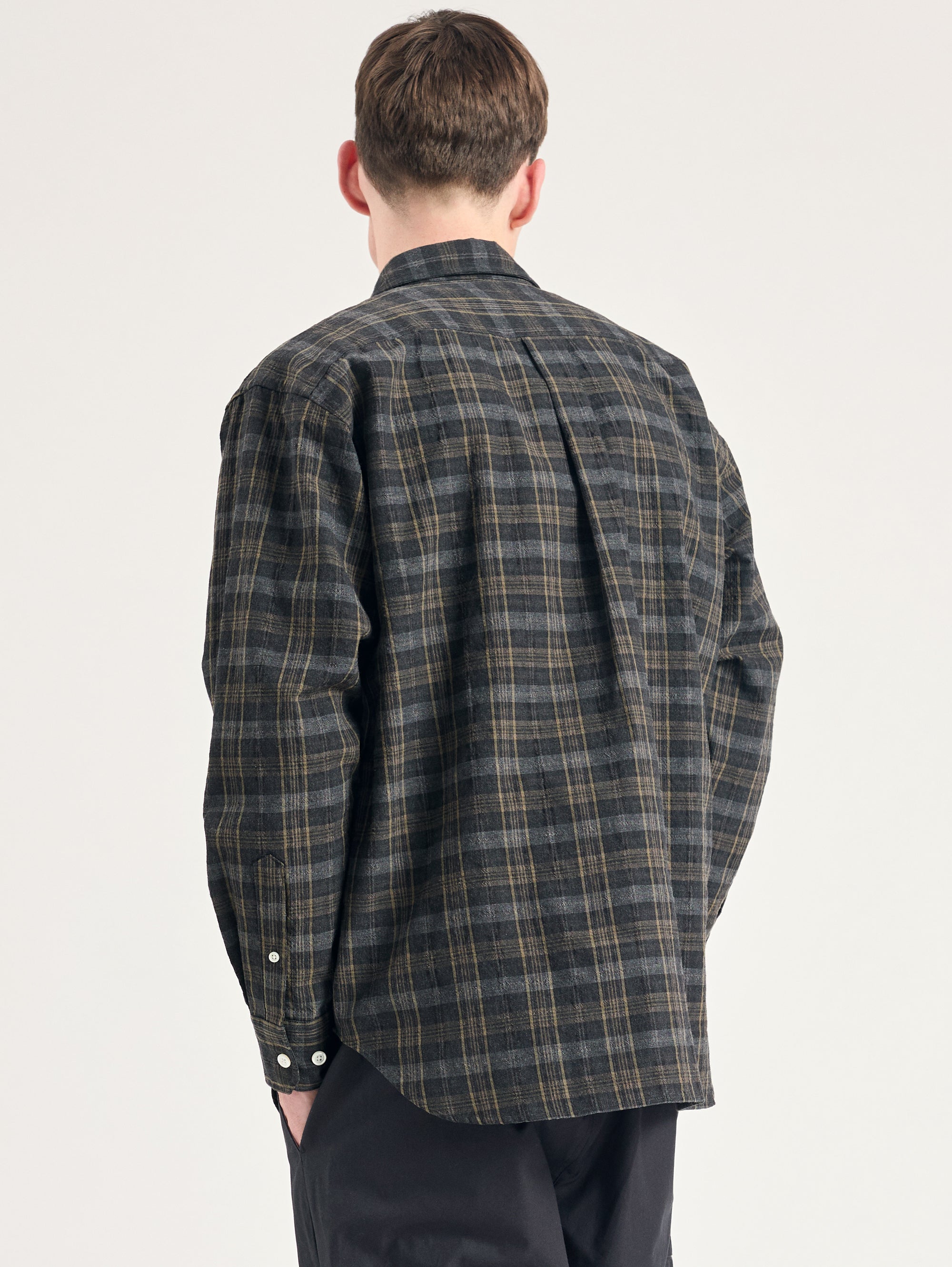 - Camicia a quadri in flanella stropicciata con taschino sul petto