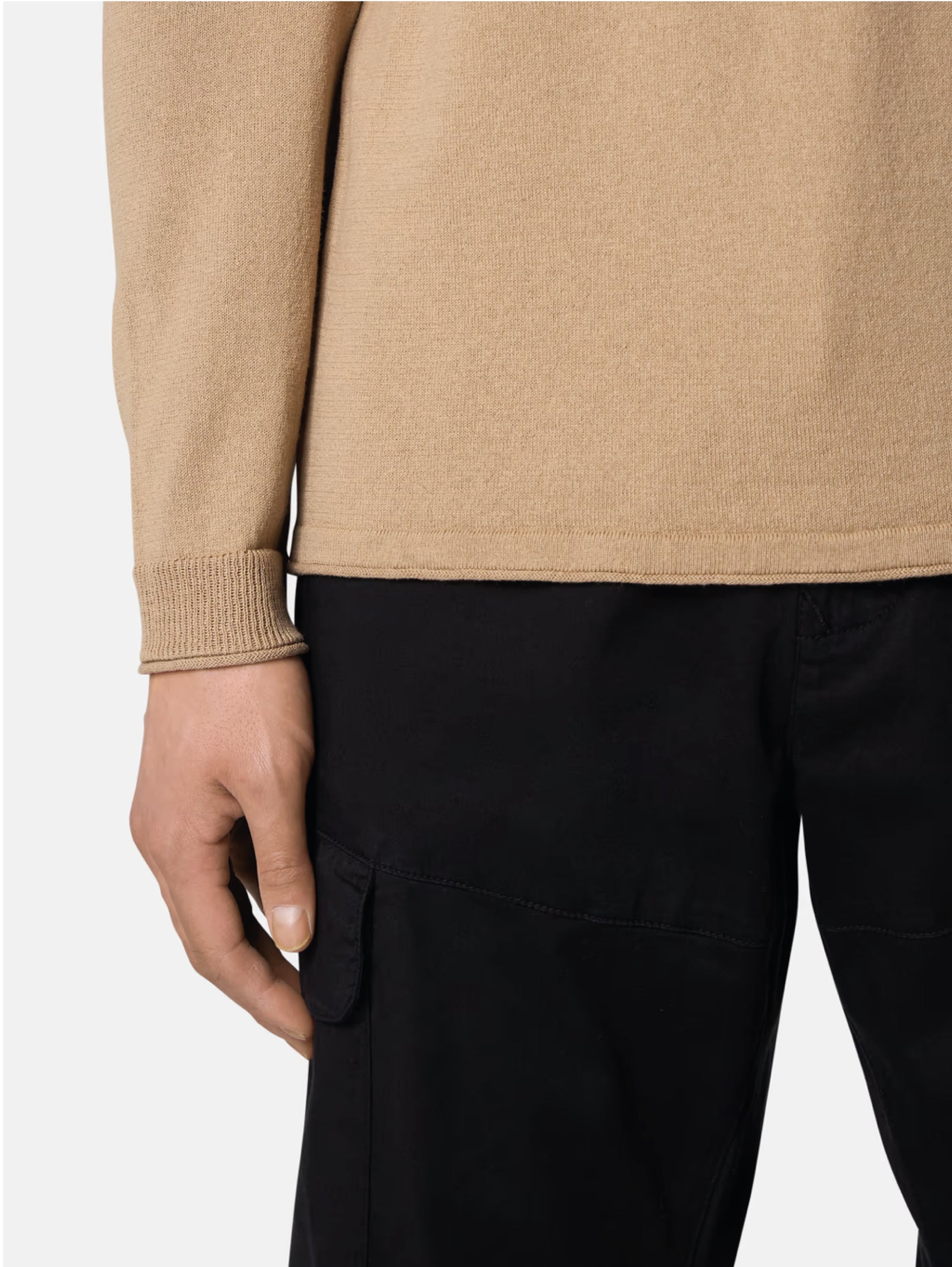 - Cuffs and ribbed bottom, with roll finish