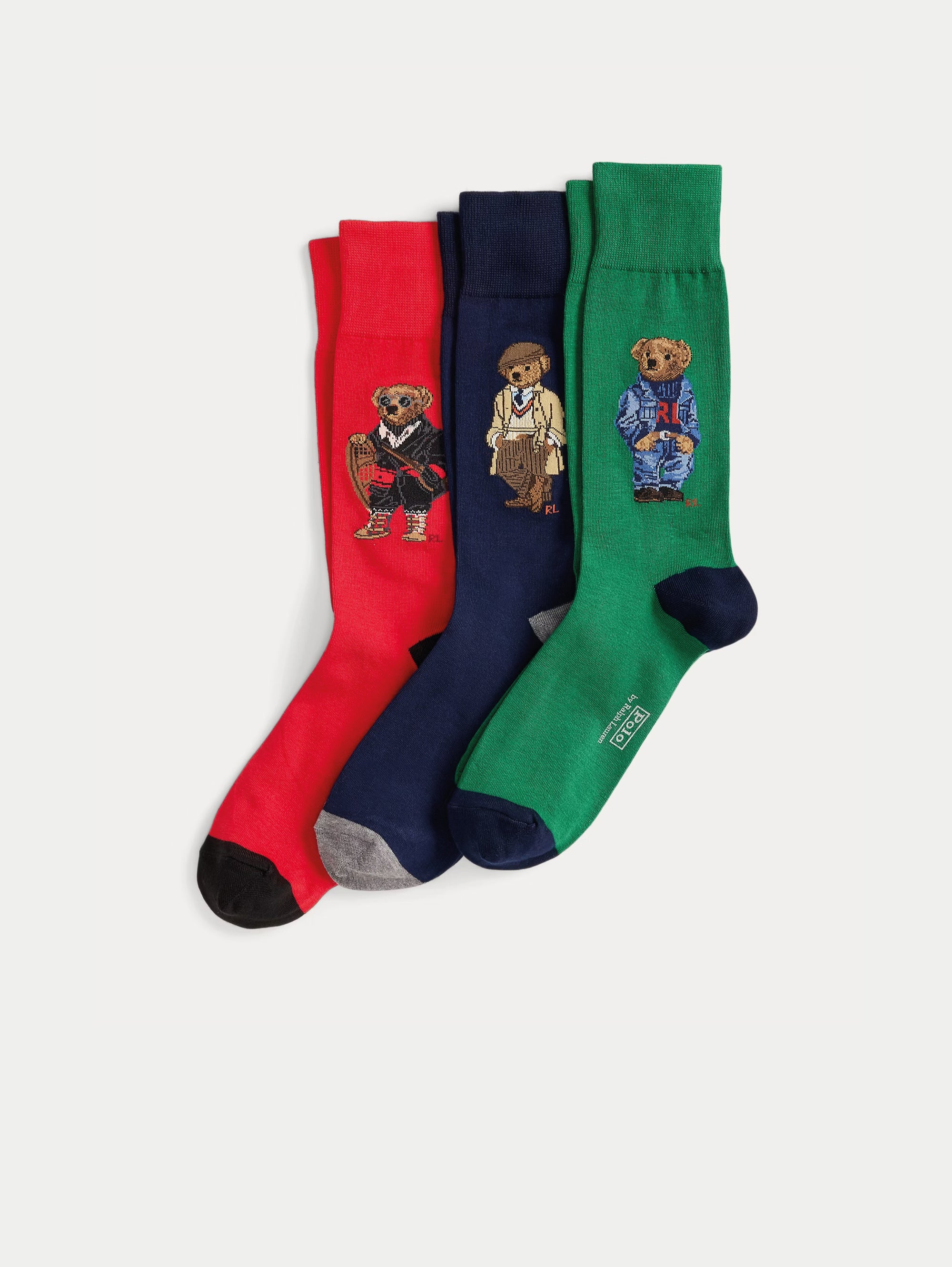 Calze Lunghe con Polo Bear in Confezione Regalo Verde/Blu/Rosso