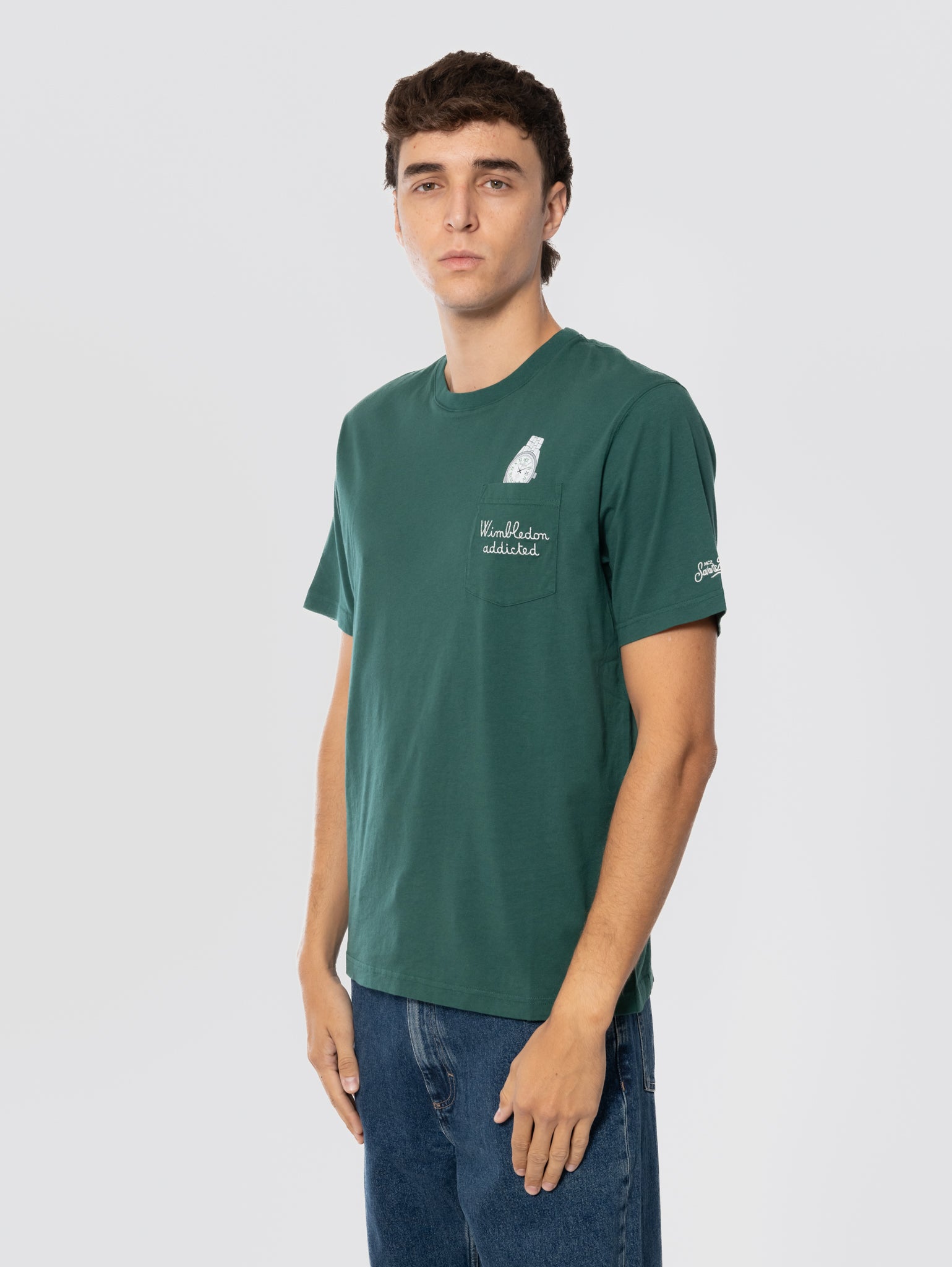 T-shirt girocollo maniche corte con taschino e ricamo Wimbledon Addicted sul petto modello Connor da uomo di Mc2 Saint Barth.