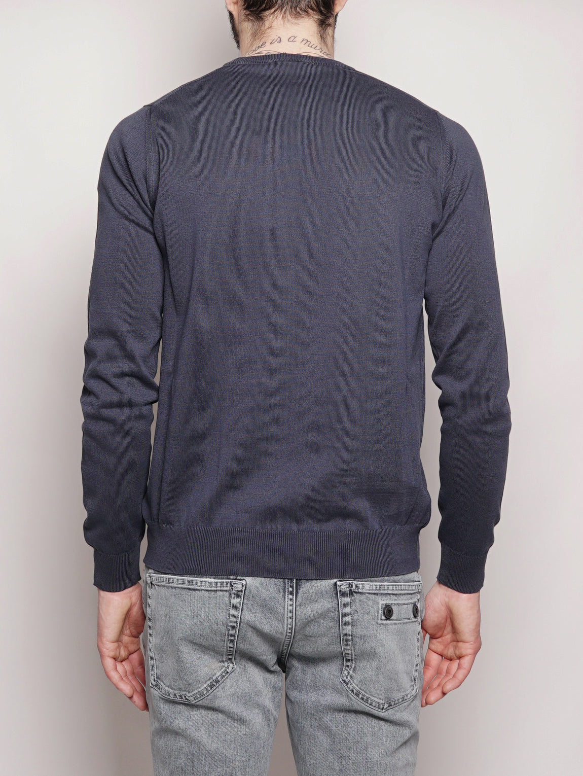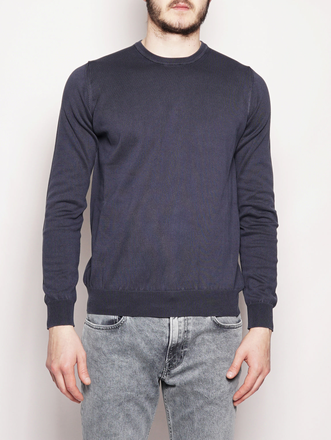 Alpha Studio men's crew neck in frosted cotton. Equipped with ribbed profiles.