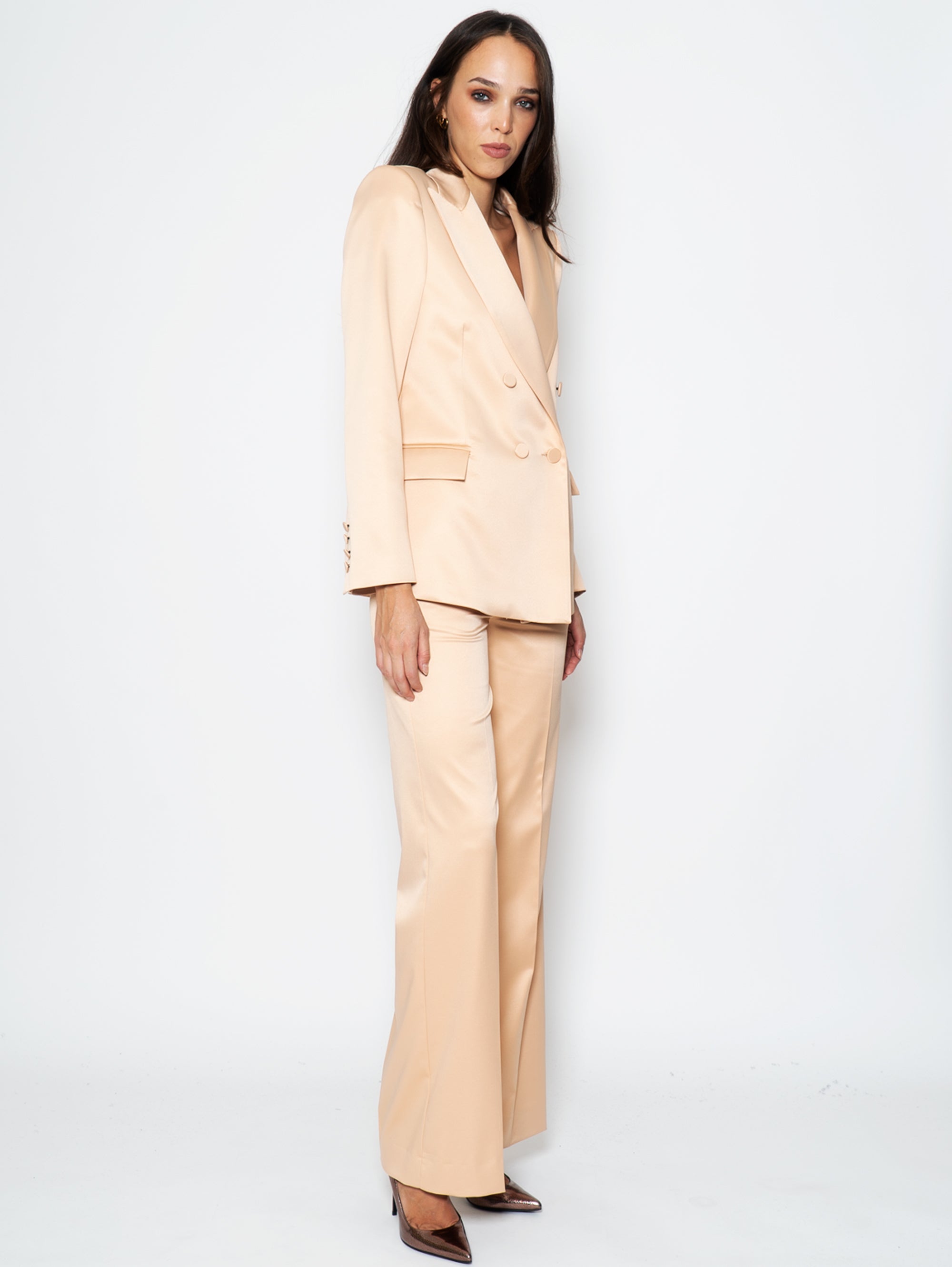 - Stretch satin trousers