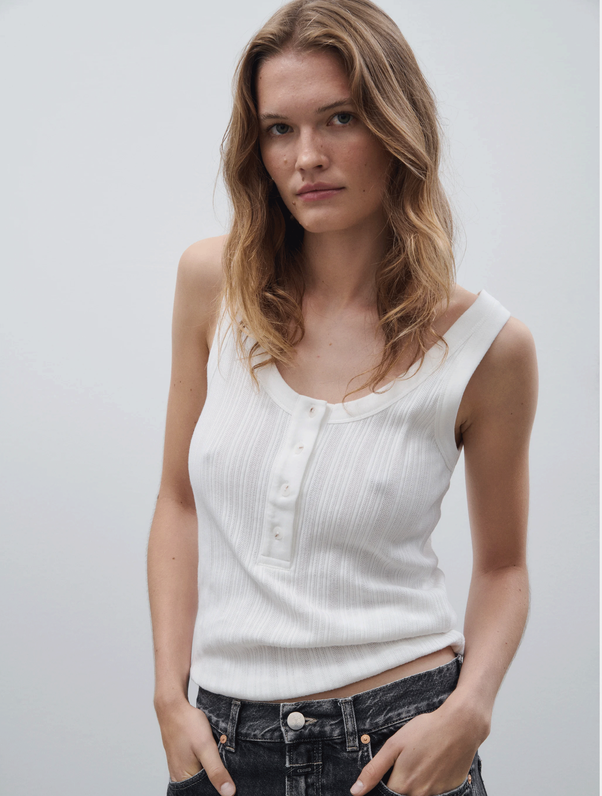 - Cod. C95562 424 22 - 218 - HALF PLACKET TANK TOP - IVORY